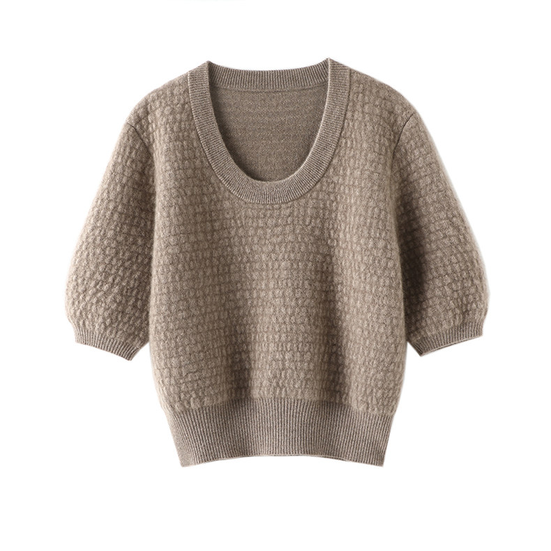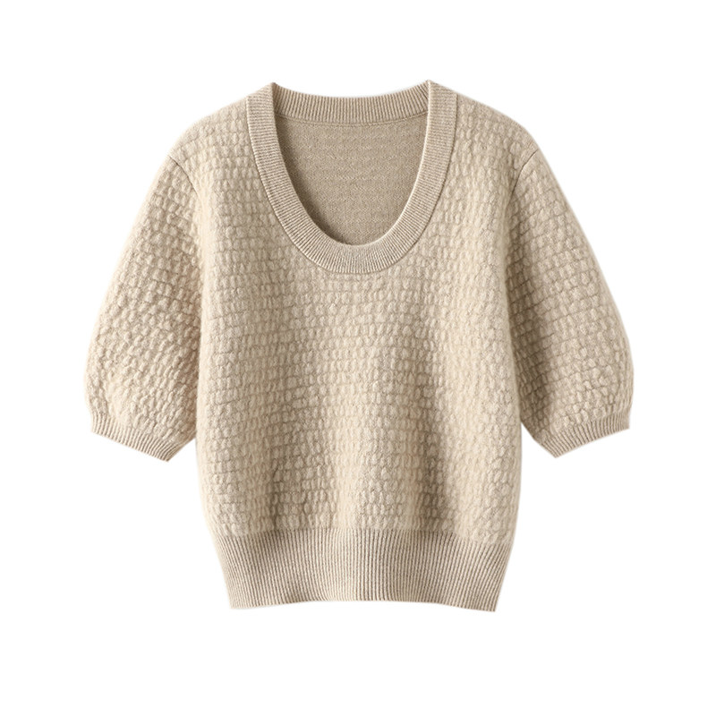 📚 宝藏气质单品!加厚保暖U型圆领羊绒衫女短袖纯羊绒毛衣短款宽松