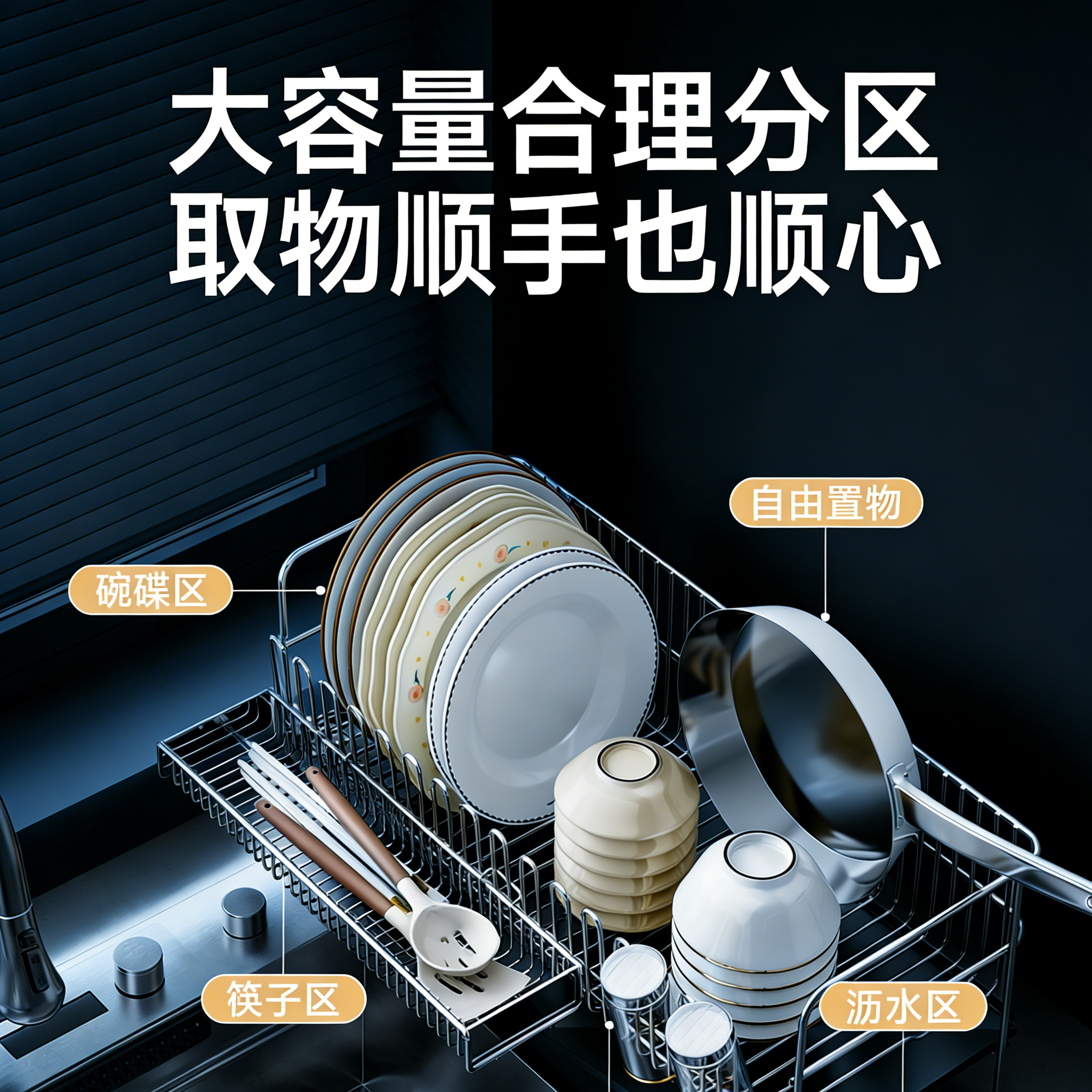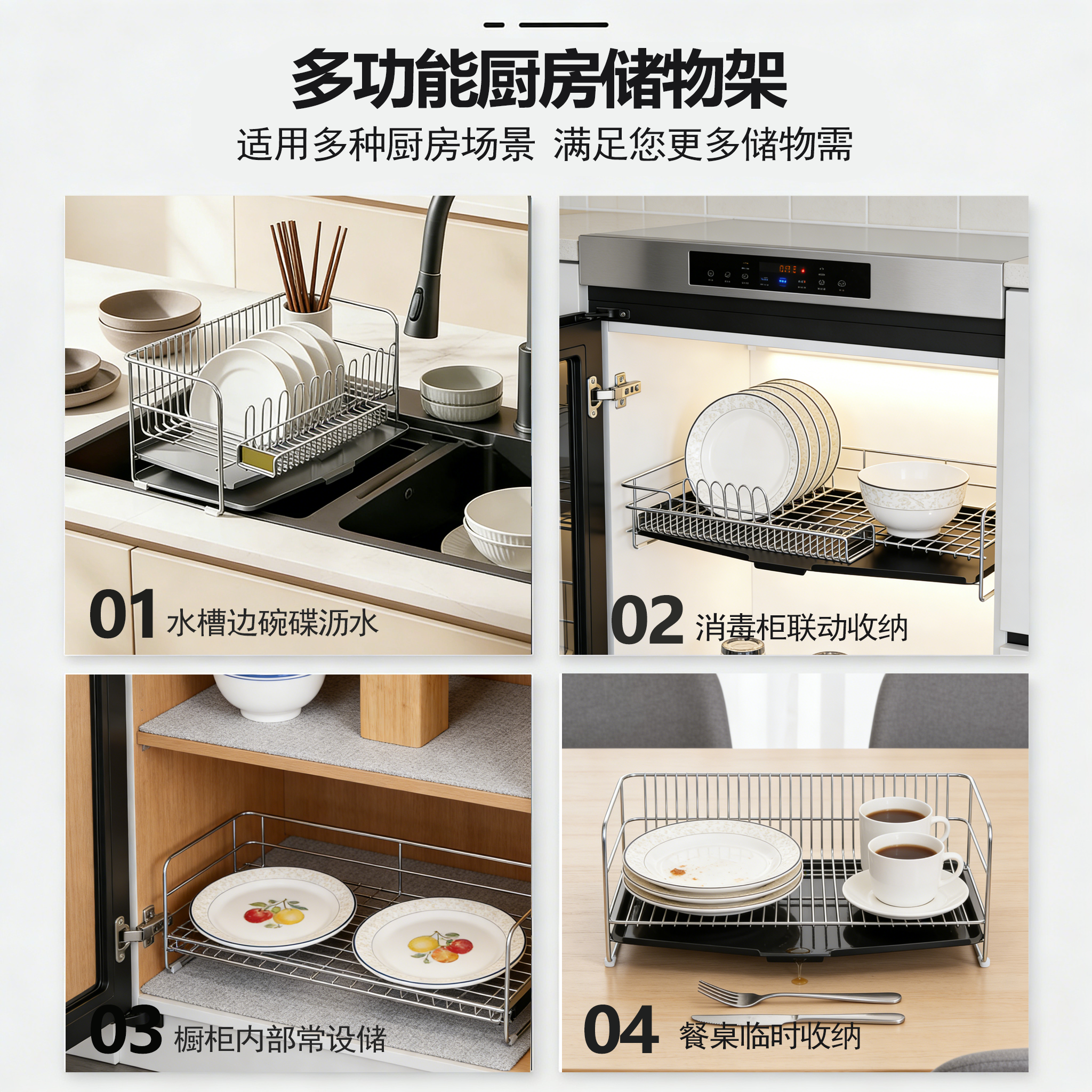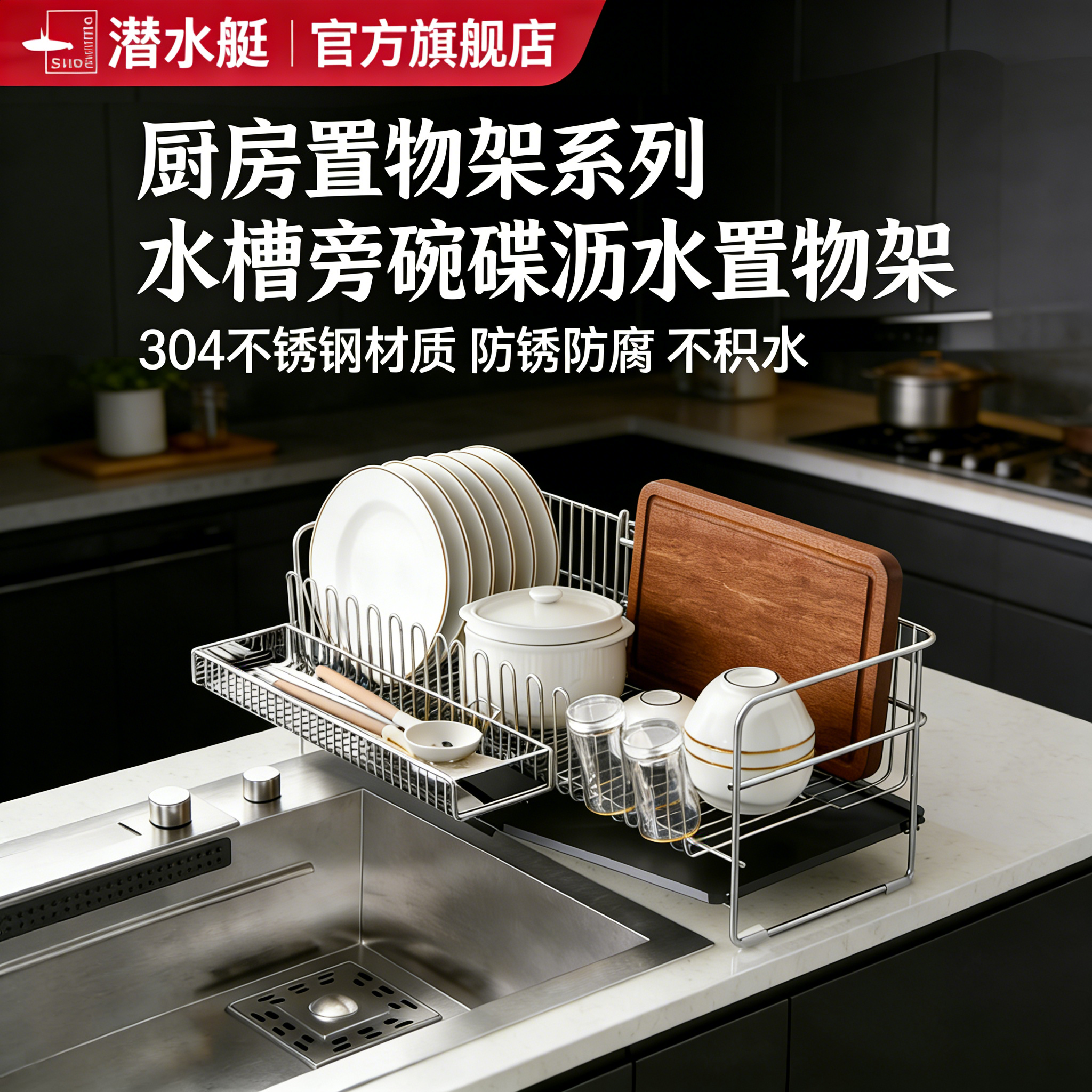 📚 潜水艇304不锈钢多功能厨房置物架子台面灶台上水槽沥水碗具收纳