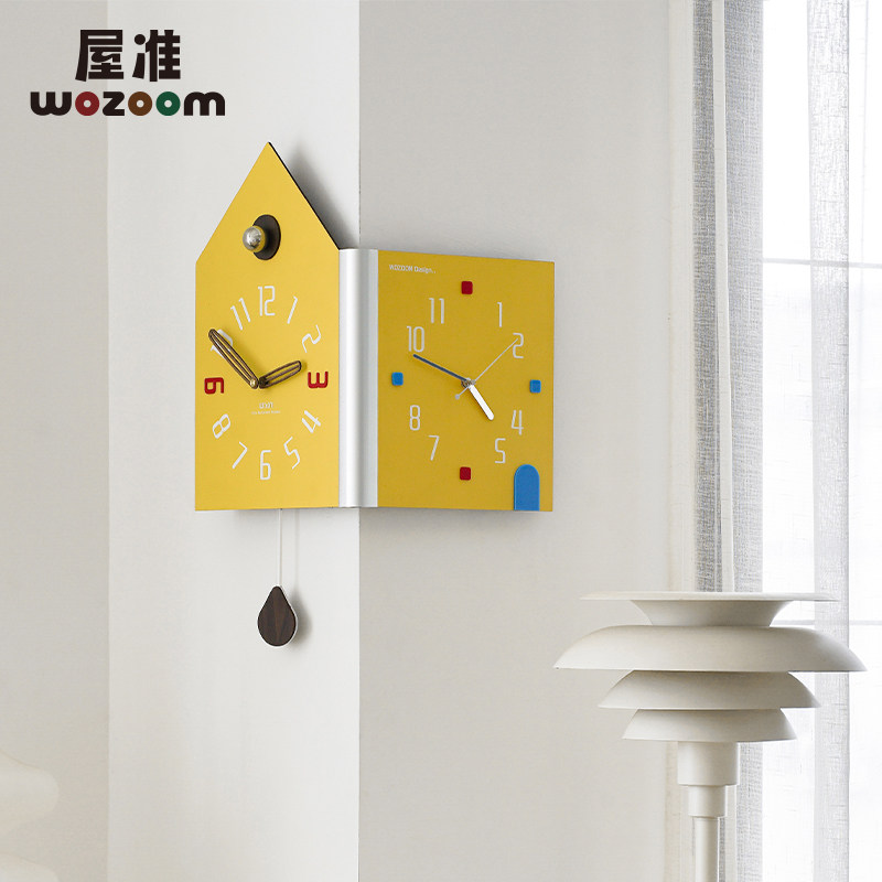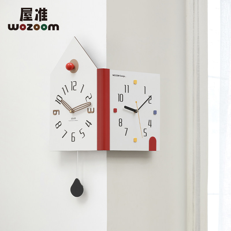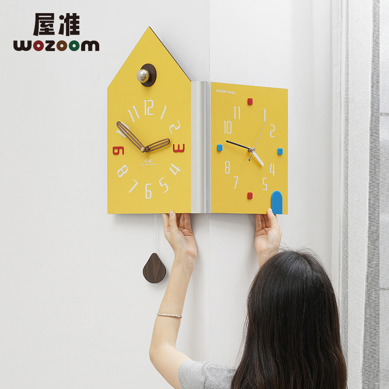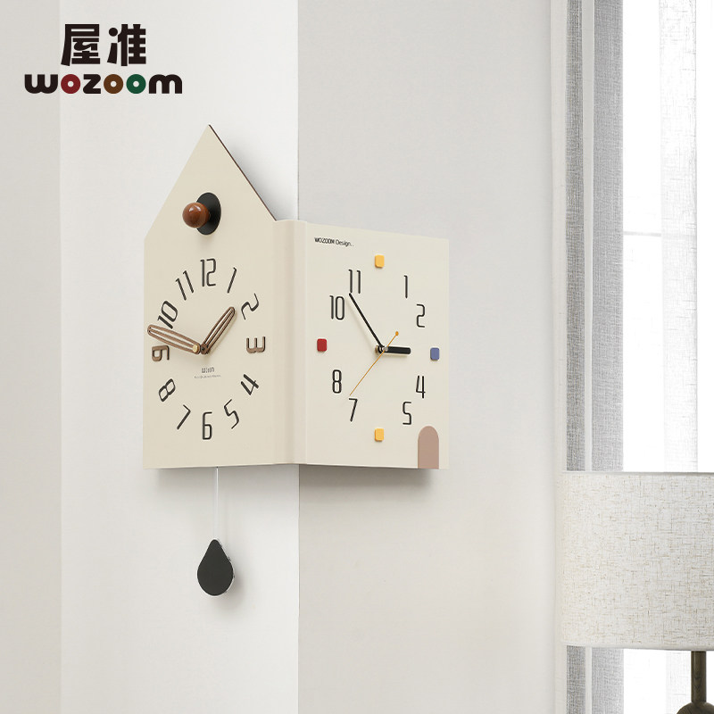 📚 WOZOOM屋准免打孔现代简约双面挂墙钟表2026新款客厅创意拐角挂钟