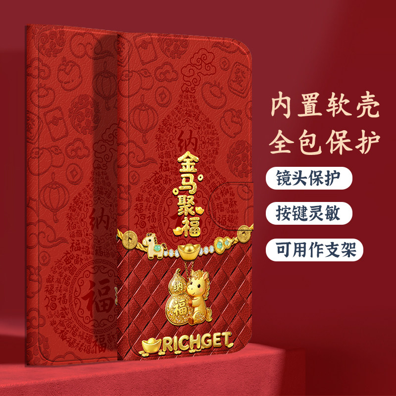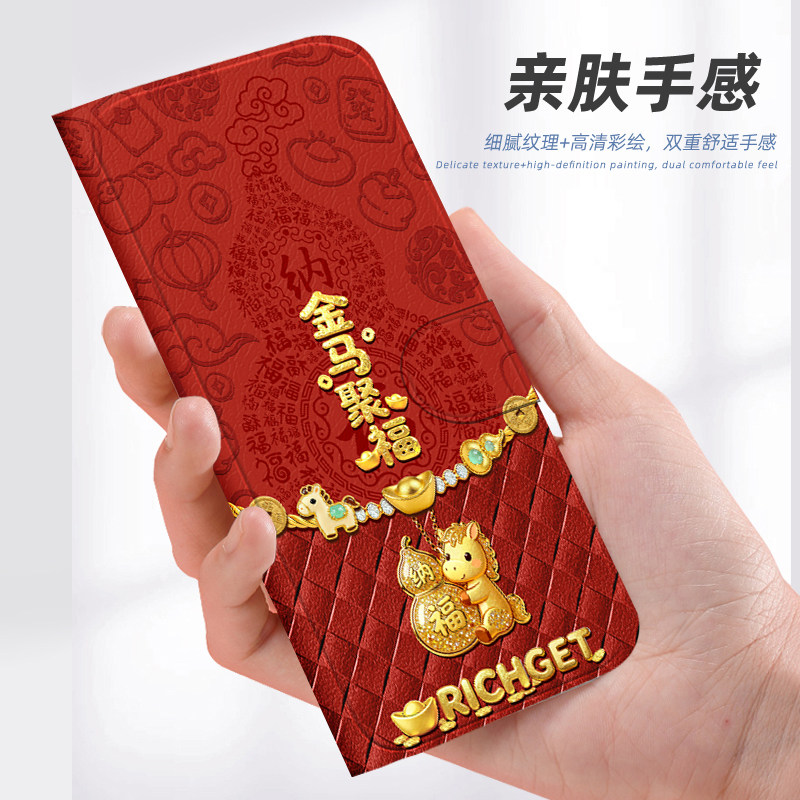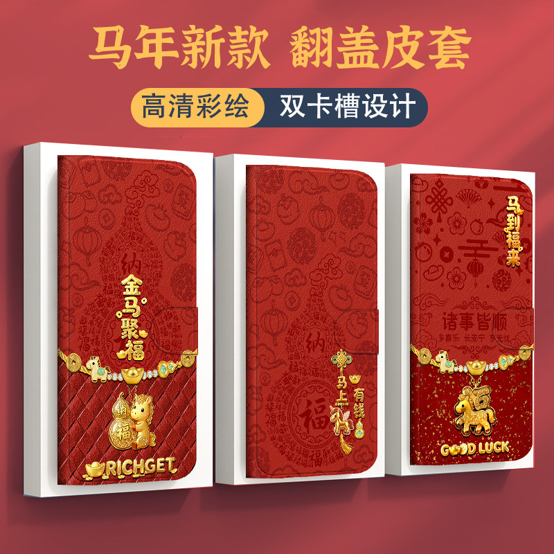 📚 马年翻盖皮套适用红米note15手机壳note14新年note13防摔9pro女note8软7插卡turbo4/k90/11tpro/12pro全包15r