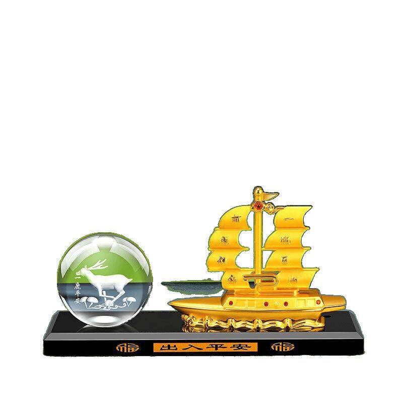 📚 S8H汽车摆件合金帆船一帆风顺一鹿平安摆件车内水晶