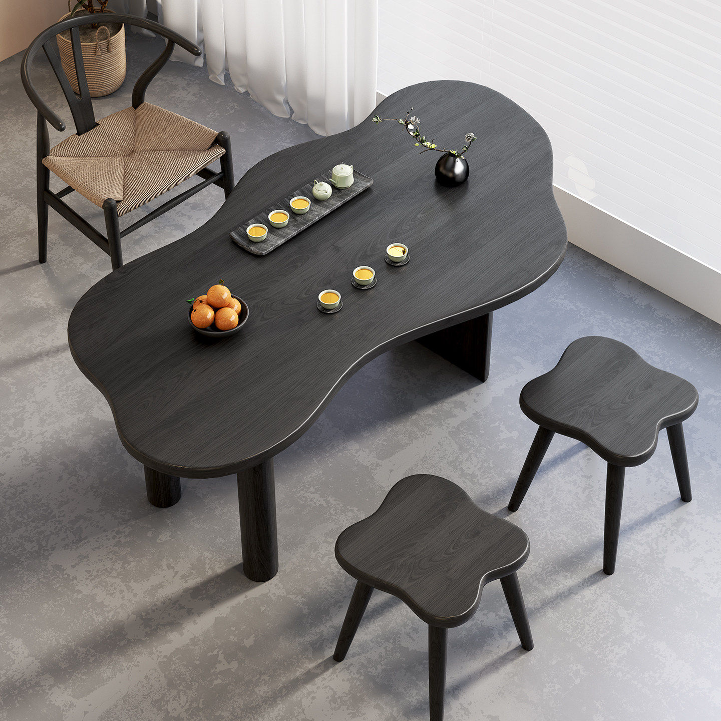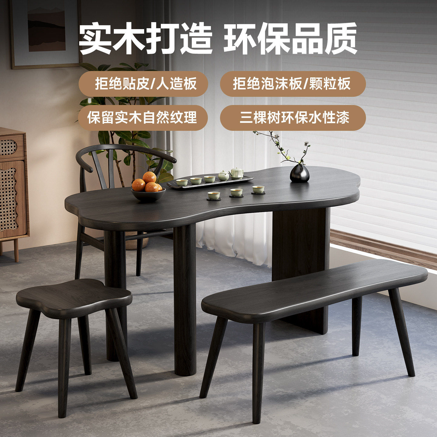 📚 泡茶台新中式简约实木茶桌椅组合现代简约家用茶台黑色异形桌面