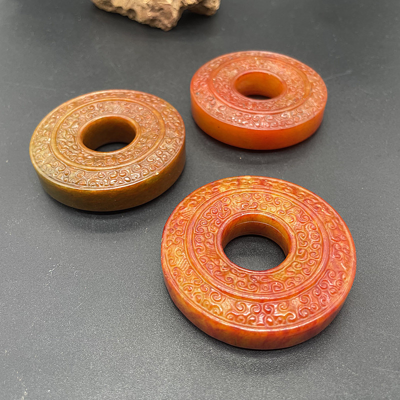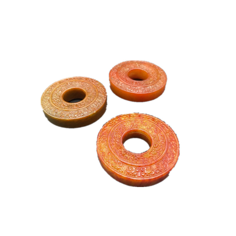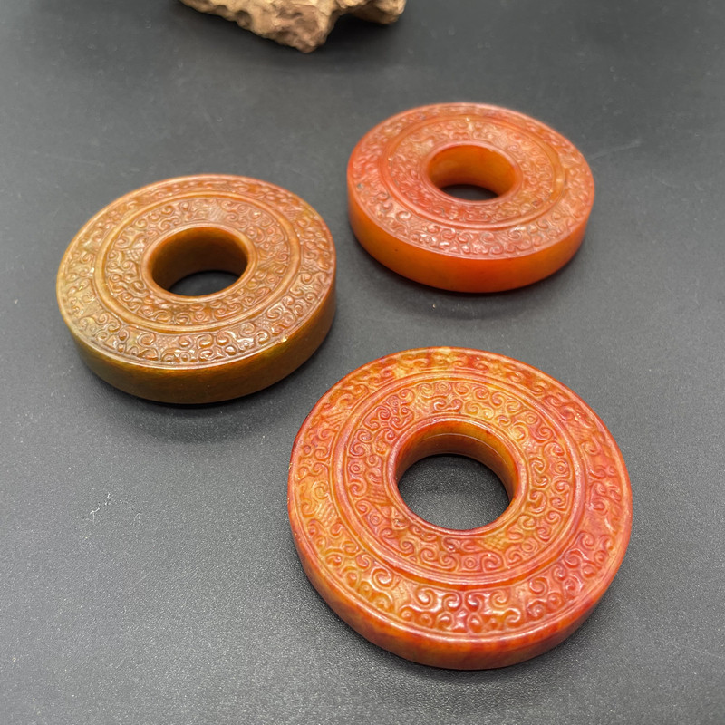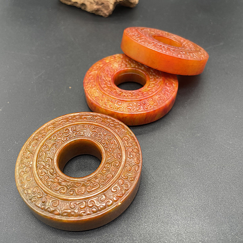 📚 古玩玉器岫玉祥云纹玉佩茶置摆件把玩件双面平安扣玉挂饰挂件饰品