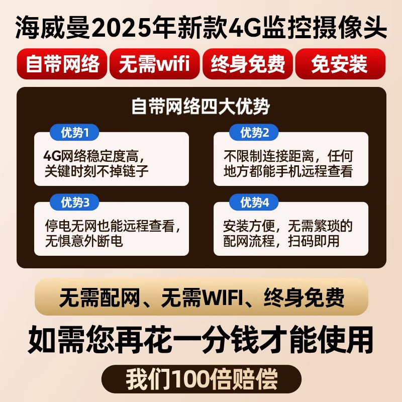 📚 海威曼4g家庭监控摄像头家用手机远程无需网络高清摄影头无需wifi
