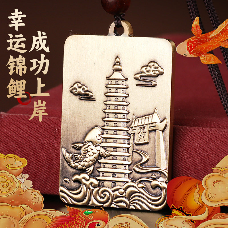 📚 道家纯黄铜文昌帝君吊坠文曲星上岸鱼跃龙门金榜题名塔钥匙扣挂件