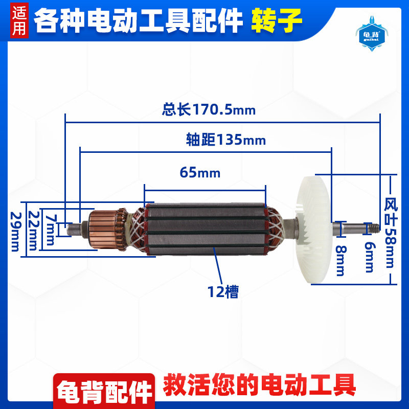 📚 适用华丽1030 1031角磨机转子雷威新G牌 锐派 博普 风火雷转子配