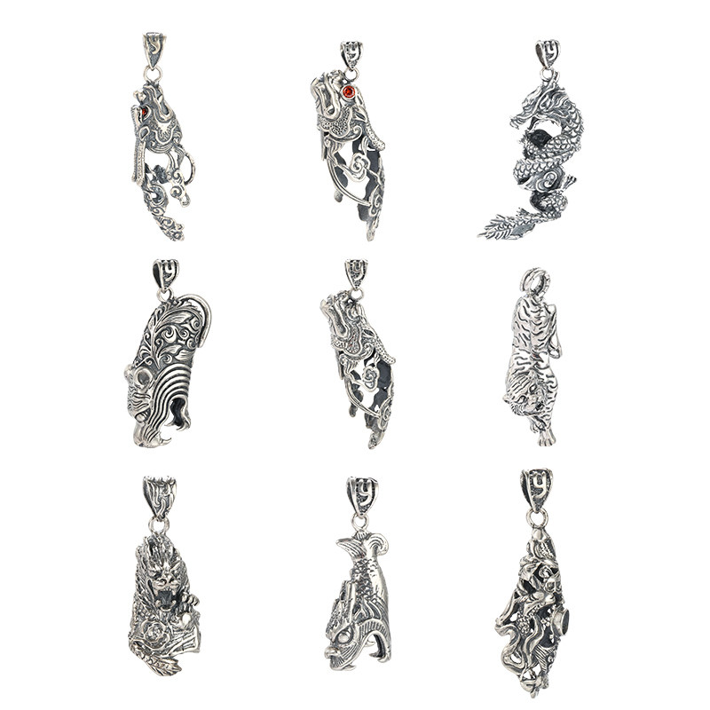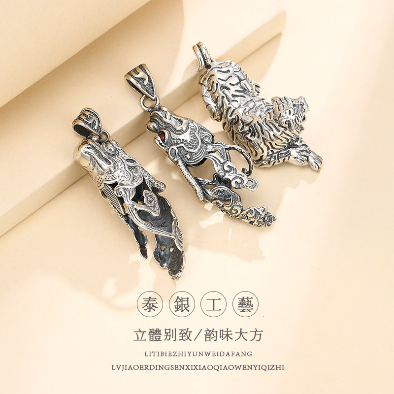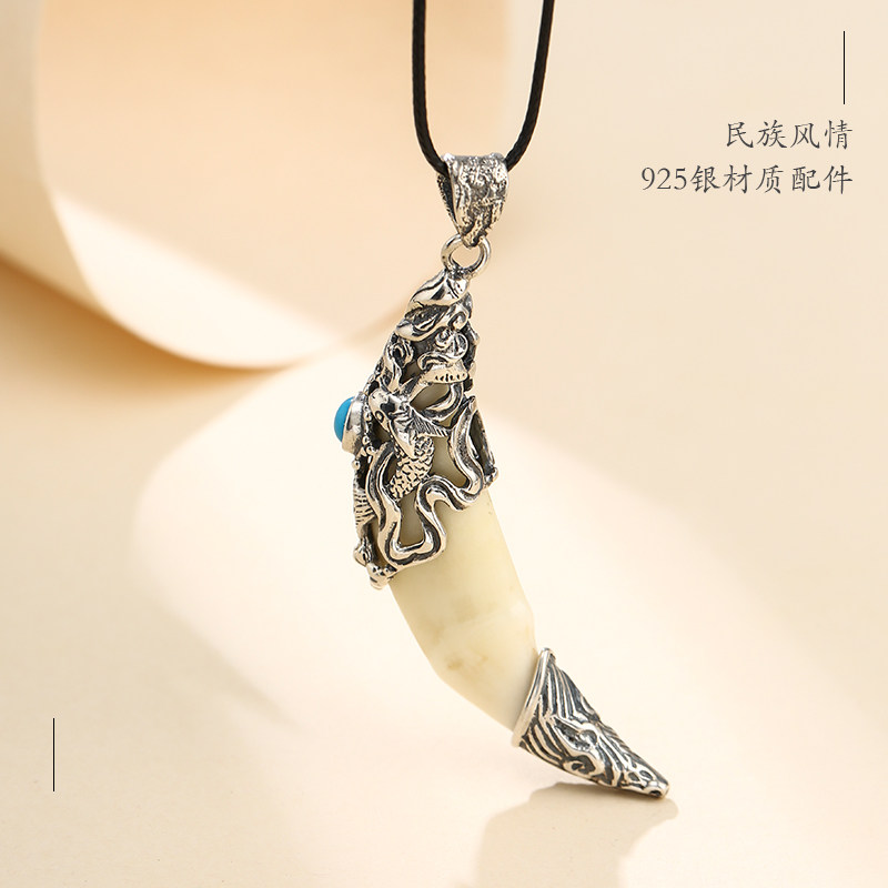 📚 纯银狼牙吊坠扣头diy配件 镶嵌黑狗牙藏獒包边防裂银扣吊坠扣空托