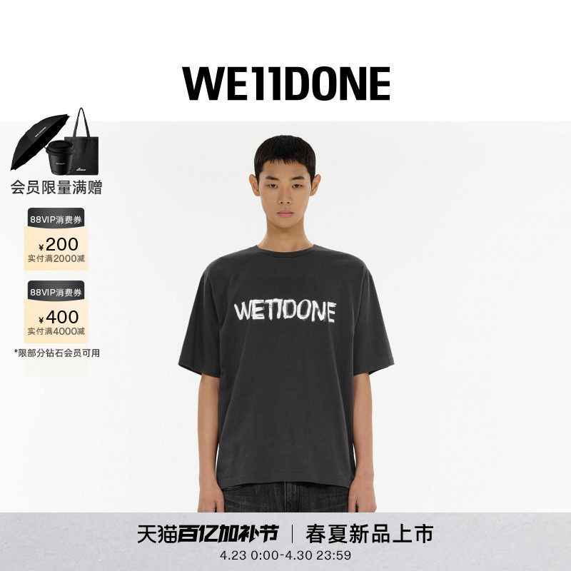📚 【明星同款】WE11DONE26春季新品男女同款趣味手绘logo短袖T恤