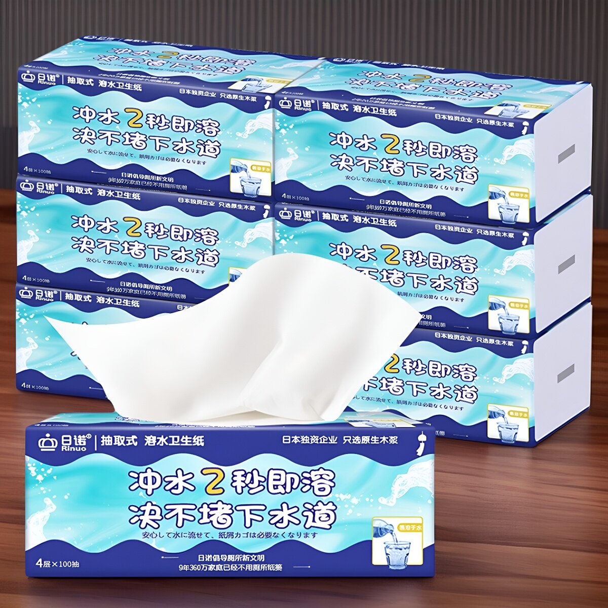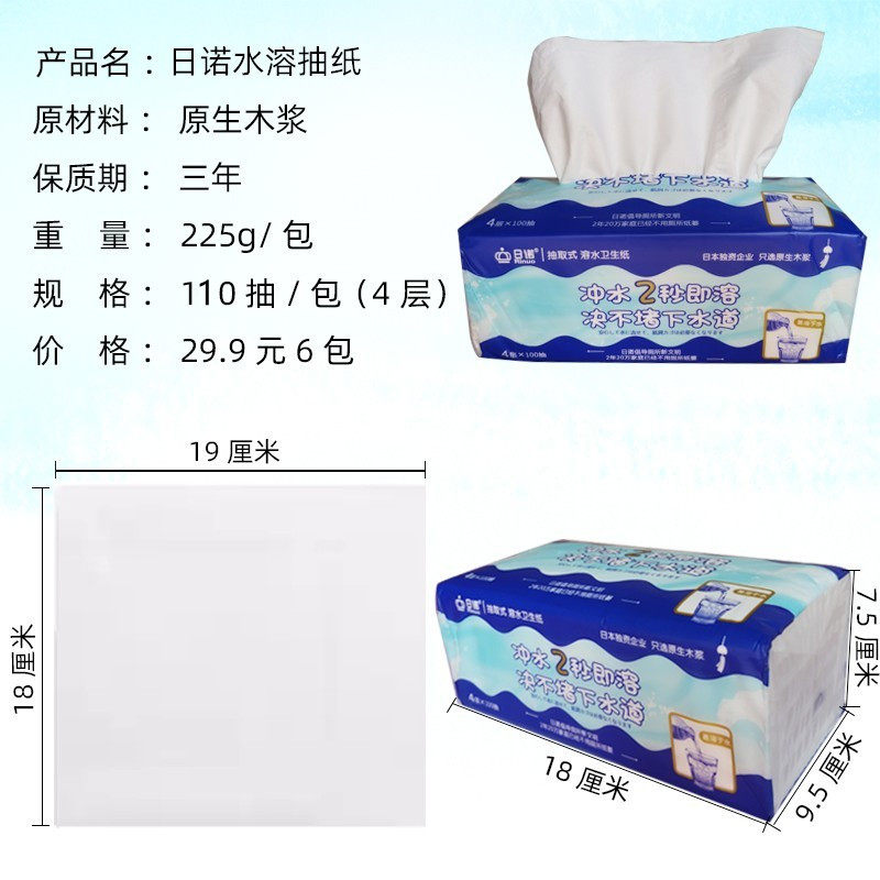 📚 日诺水溶抽纸可溶性融水卫生纸易溶解速溶可冲马桶水溶性可溶厕纸
