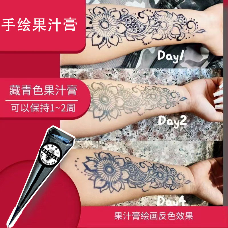 📚 25g藏青色海娜手绘膏防水持久2周jagua果汁膏植物纹身膏刺青色+笔