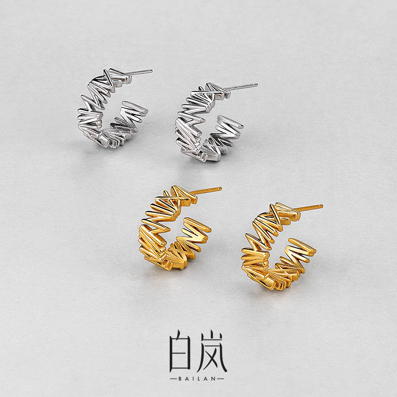📚 白岚松叶耳环925银小众耳钉耳饰精致通勤百搭首饰女气质ED4537