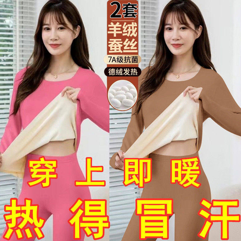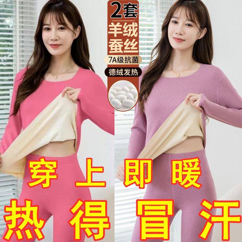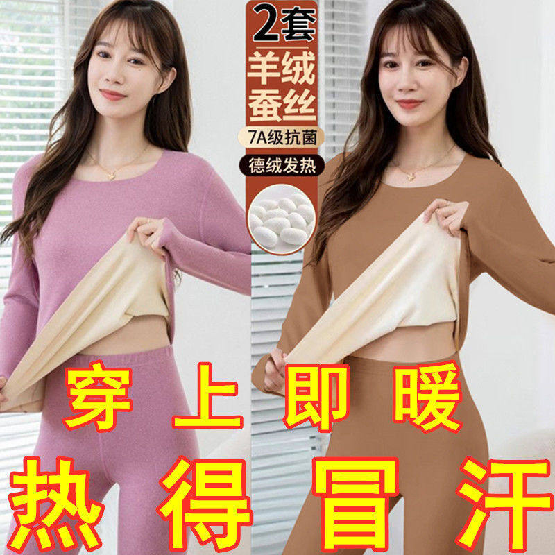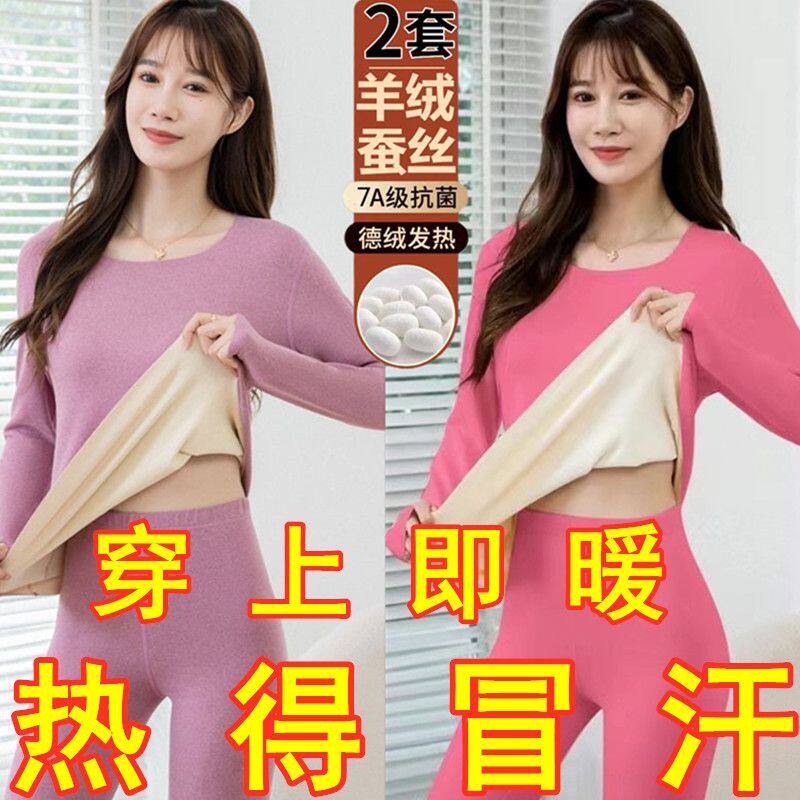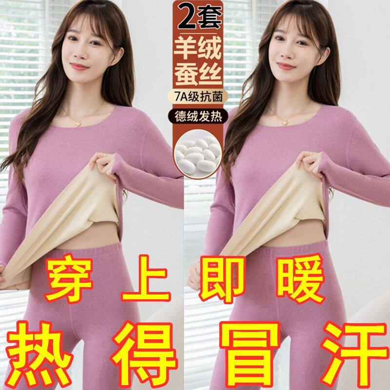 📚 买一送一德绒保暖套装女秋冬发热磨毛打底大码加绒加厚内衣两件套