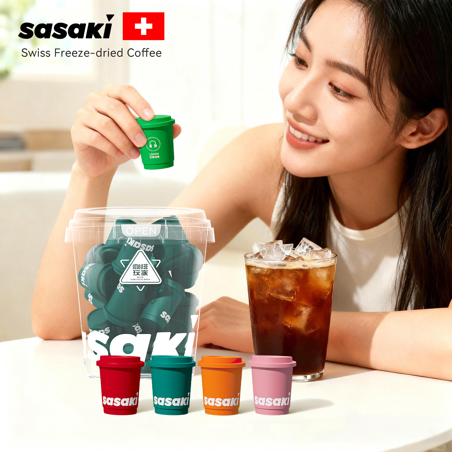 📚 三山sasaki橙c美式黑咖啡速溶冻干咖啡粉0脂冷萃咖啡桂花玫瑰风味