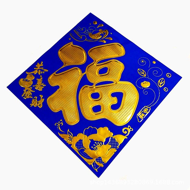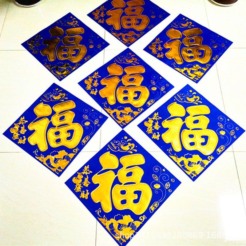 📚 新年素孝蓝色福字门贴蓝纸窗贴剪纸贴花对联家用春节烫金福子大号