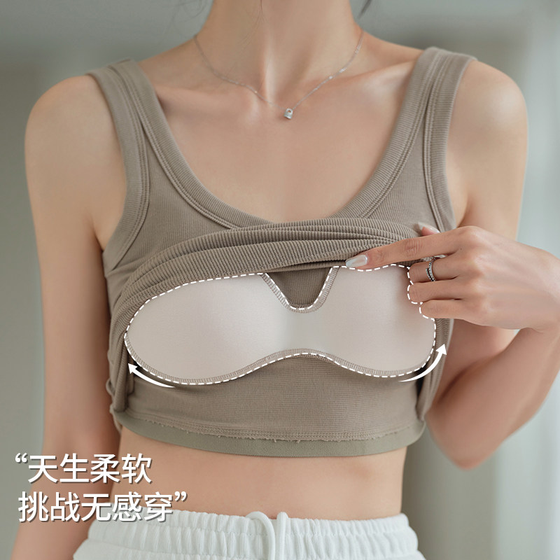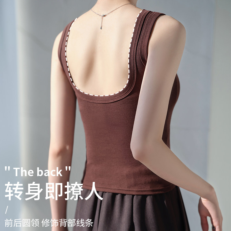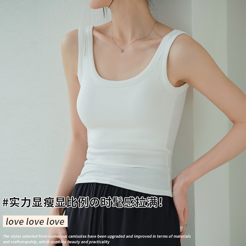 📚 自拍-宽肩吊带背心女内搭夏季新款女士U领美背带胸垫外穿白色上衣