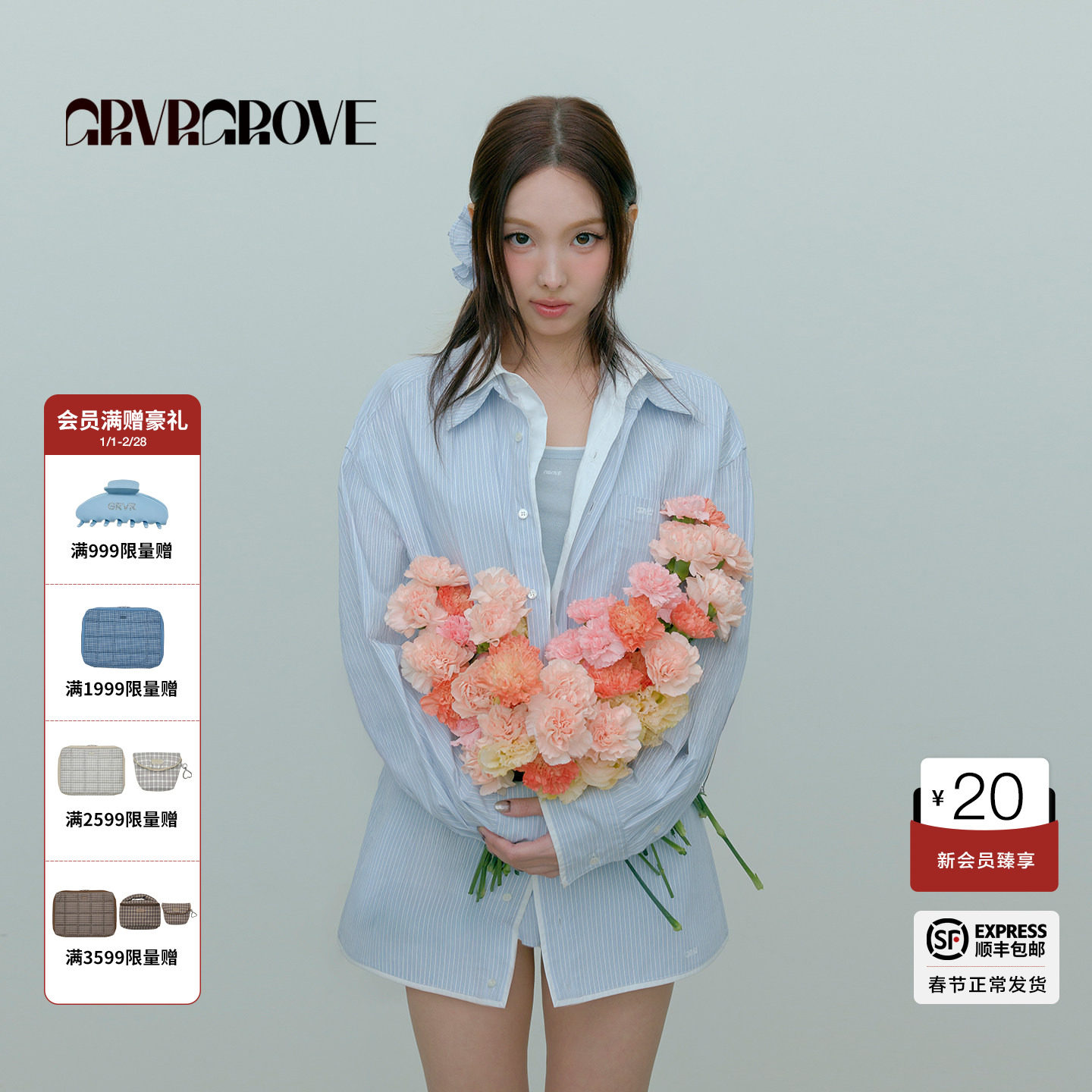 📚 【林娜琏同款】GROVE2026PS春季长袖衬衫条纹撞色假两件GP26SHC06