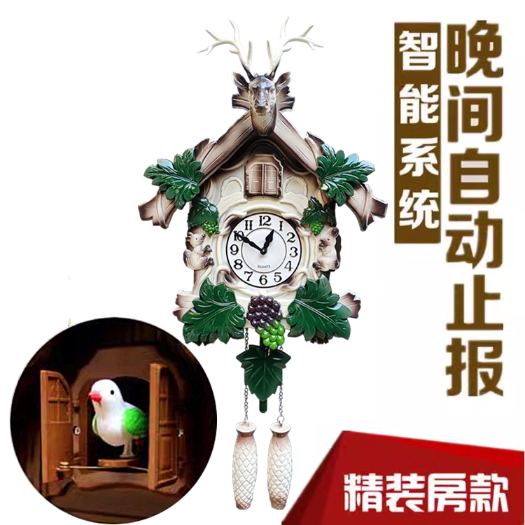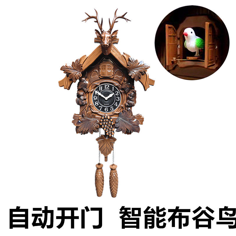 📚 北欧挂钟布谷鸟出窗整点报时钟表客厅家用夜间不报时卡通咕咕钟表