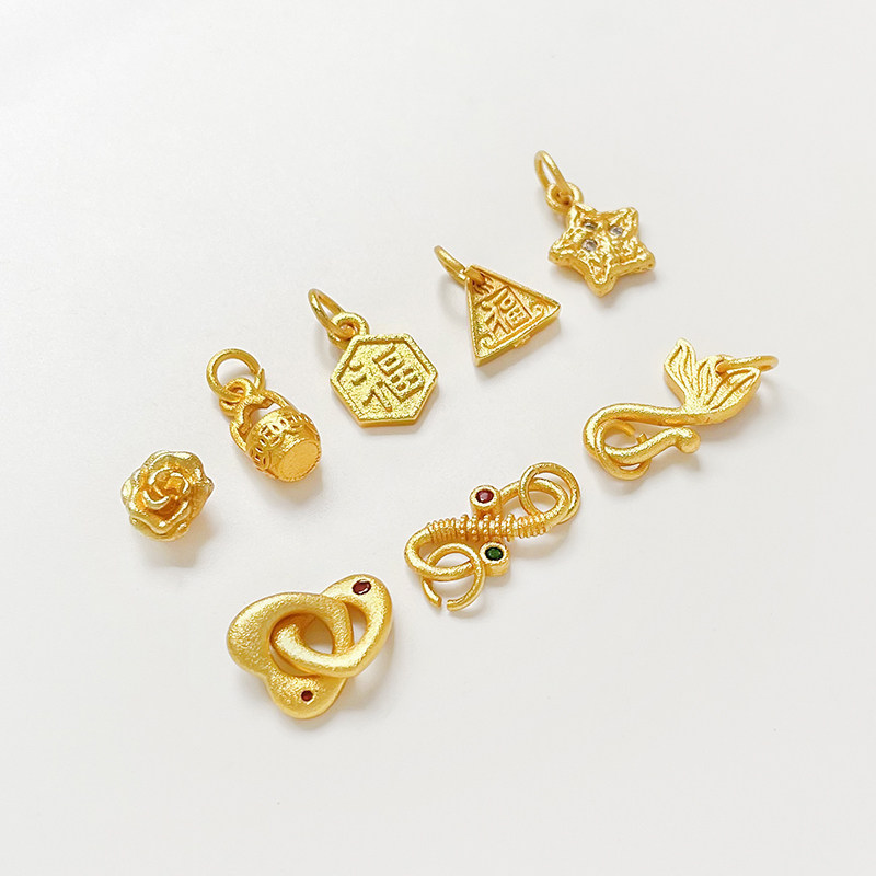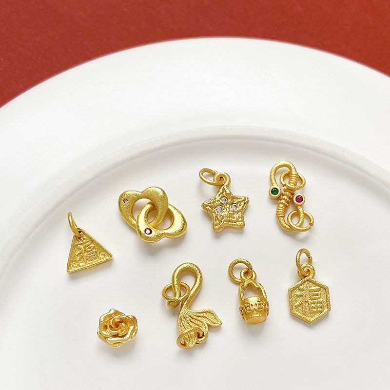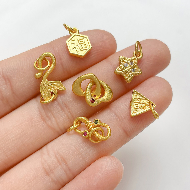 📚 保色沙金福牌爱心牡丹天鹅挂件diy手工饰品手链项链串珠配件项坠