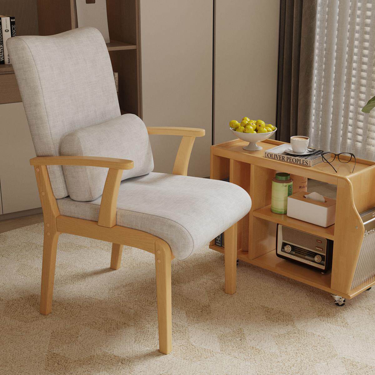 📚 老人椅子实木扶手餐椅家用书房久坐护腰高背麻将椅人体工学靠背椅