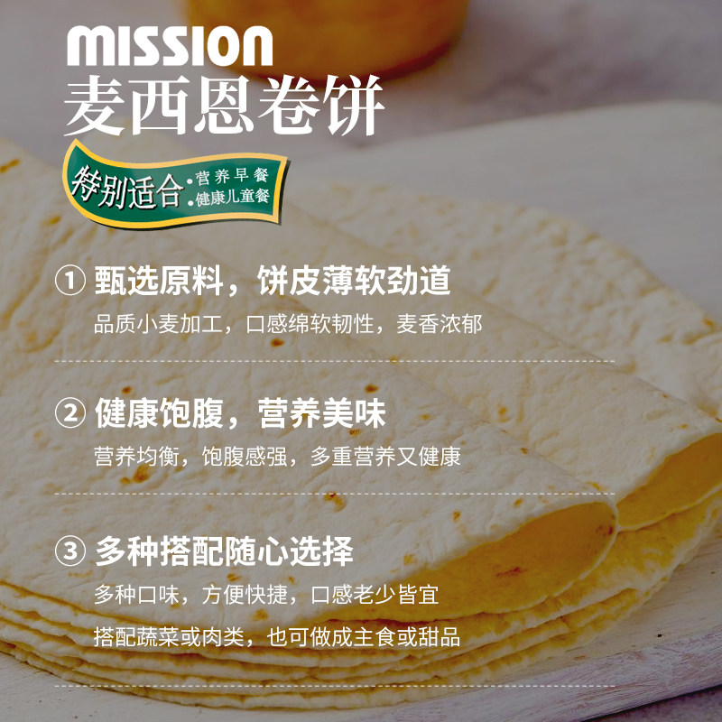 📚 麦西恩卷饼270g*3袋18片营养方便早餐饼8英寸全麦粗粮面饼手抓饼