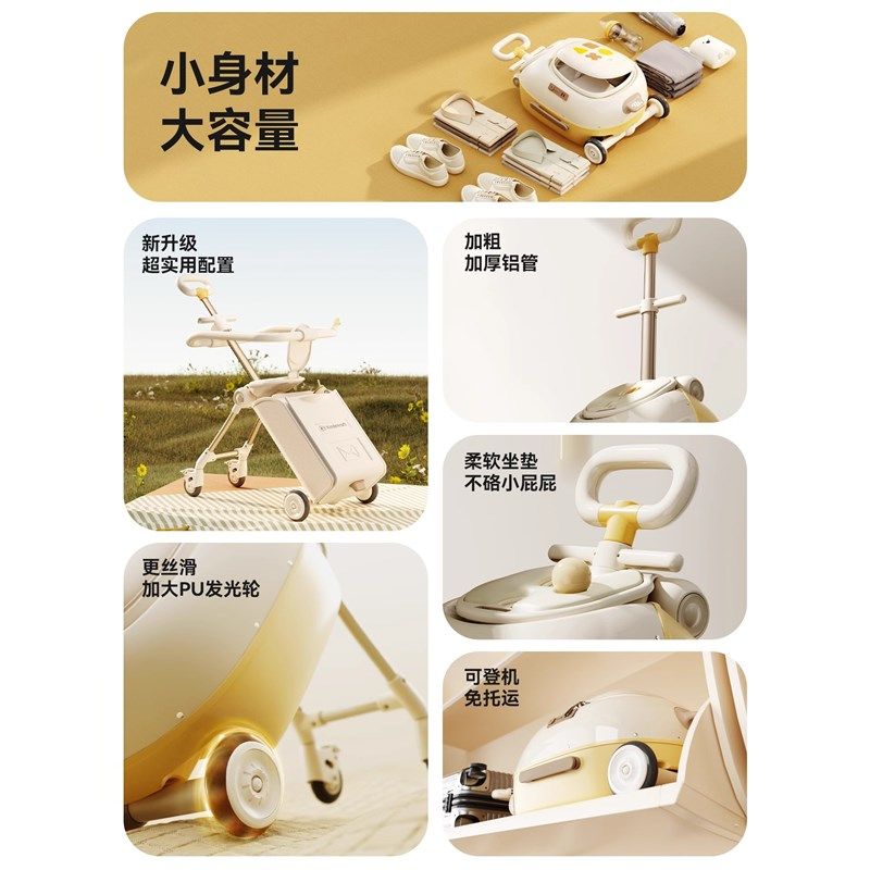这款行李箱真的超级实用!无论是大人出行还是孩子出行,都能轻松应对。超大容量收纳箱,轻松收纳宝宝的衣物、玩具和日常用品,让旅行更加轻松愉快。而且,它的可坐骑行设计,让宝宝在旅行中也能尽情玩耍,不用担心长时间乘坐会不舒服。