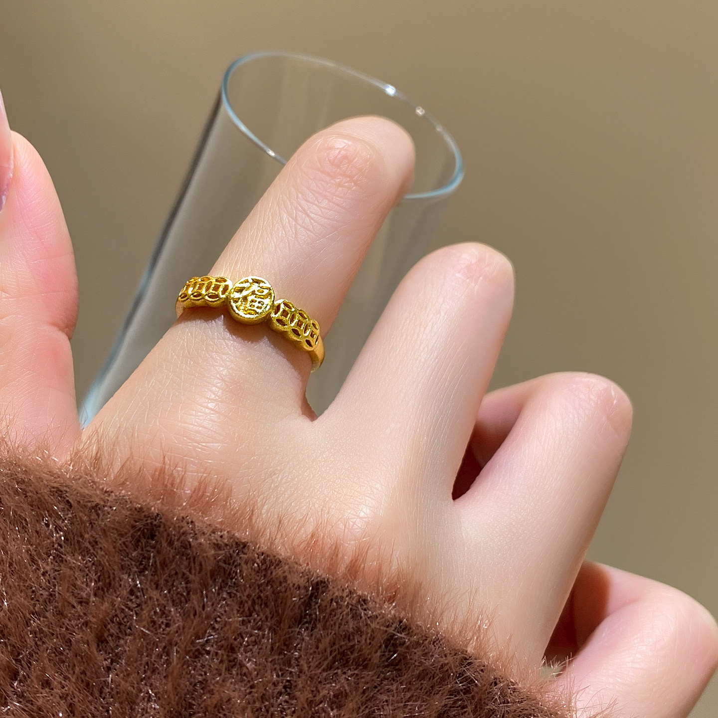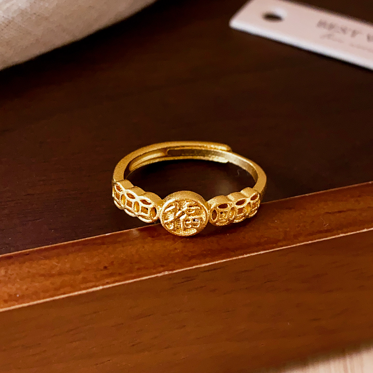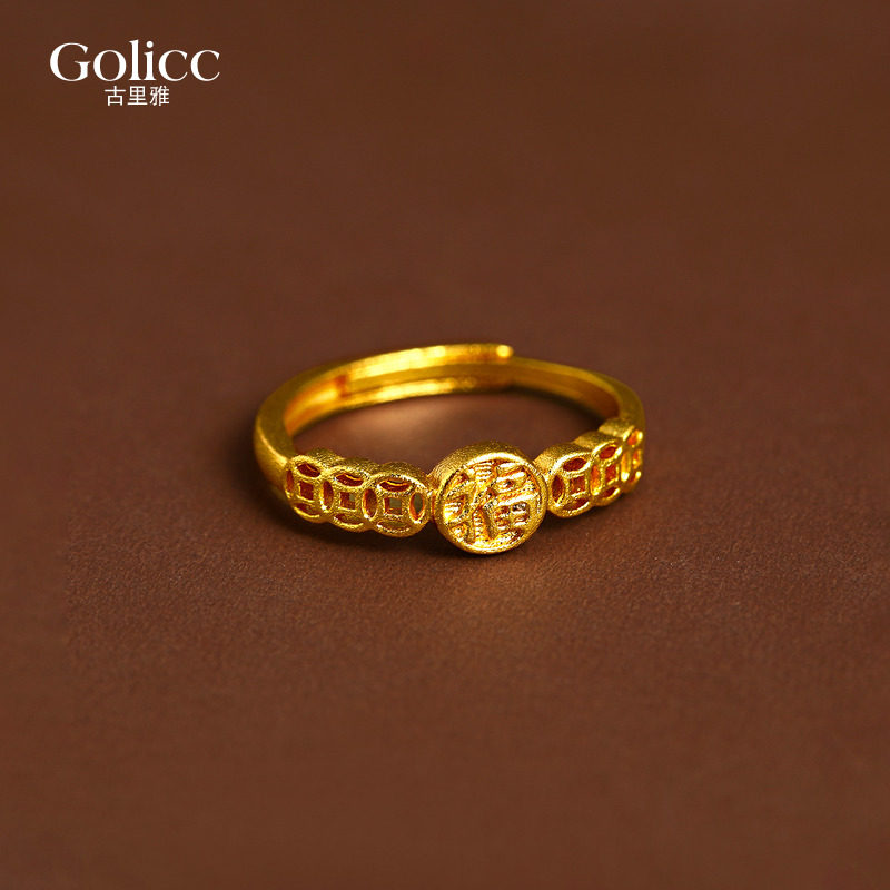 📚 古法沙金钱币开口戒指女2026新款爆款轻奢高级感小众设计食指指环