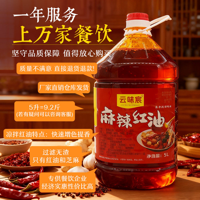 📚 云味宸香辣辣椒红油商用5L桶装无渣凉拌餐饮油泼辣椒麻辣红油蘸料
