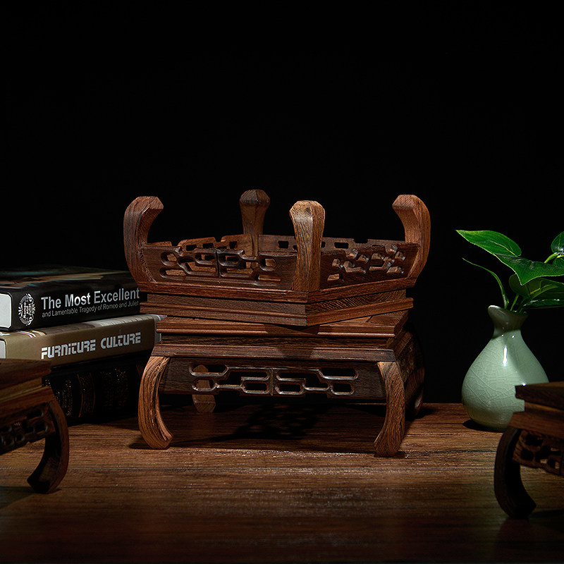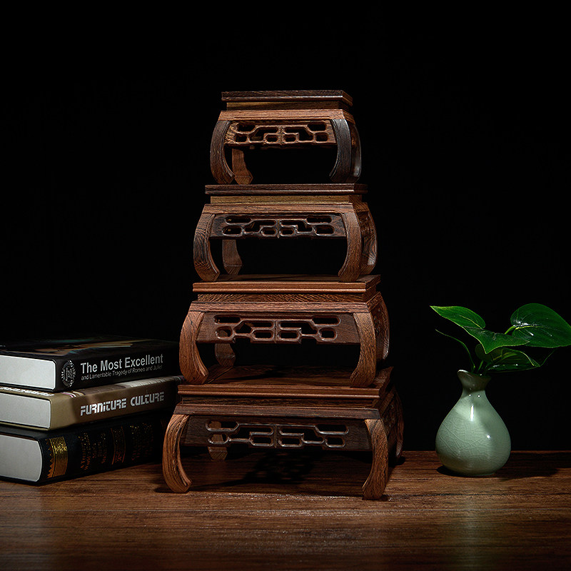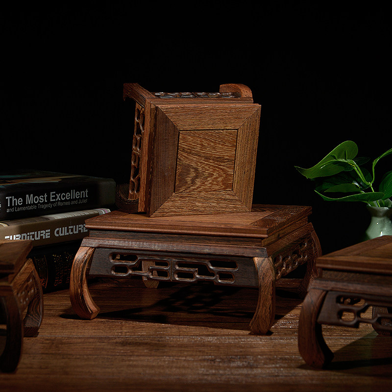 📚 全场方形红木托小底座紫砂壶花瓶奇石怀旧摆件工艺品鸡翅复古