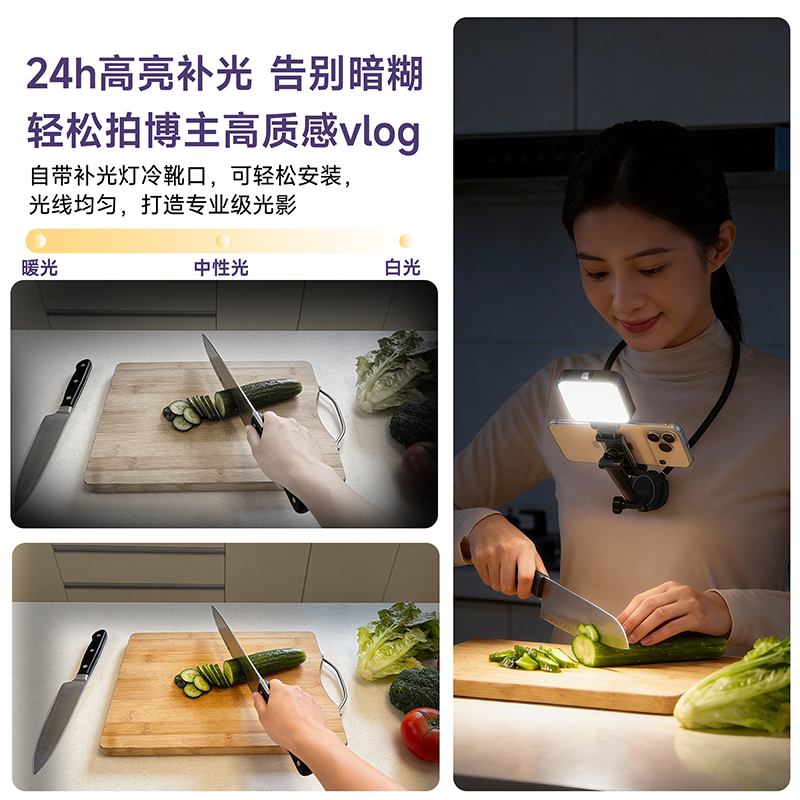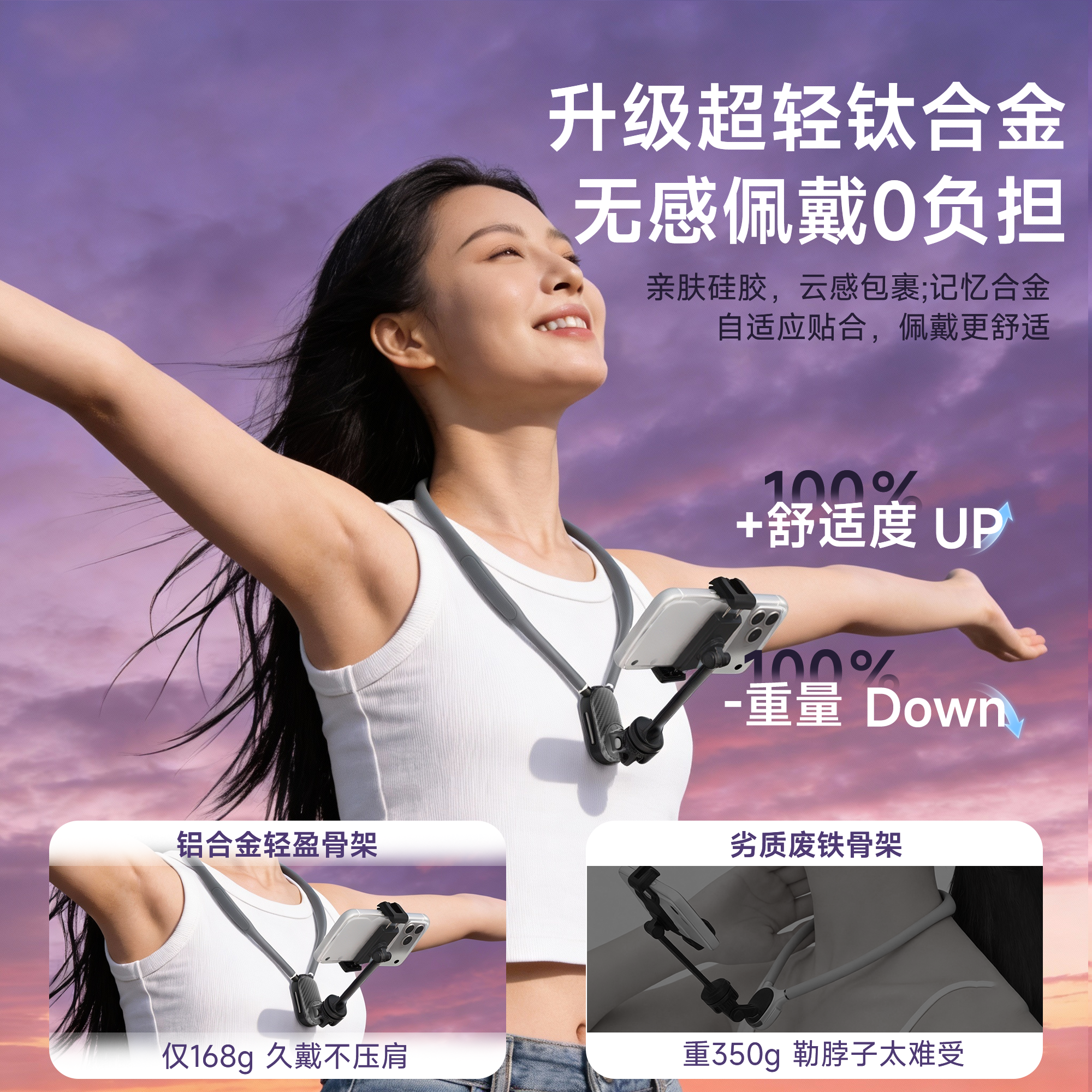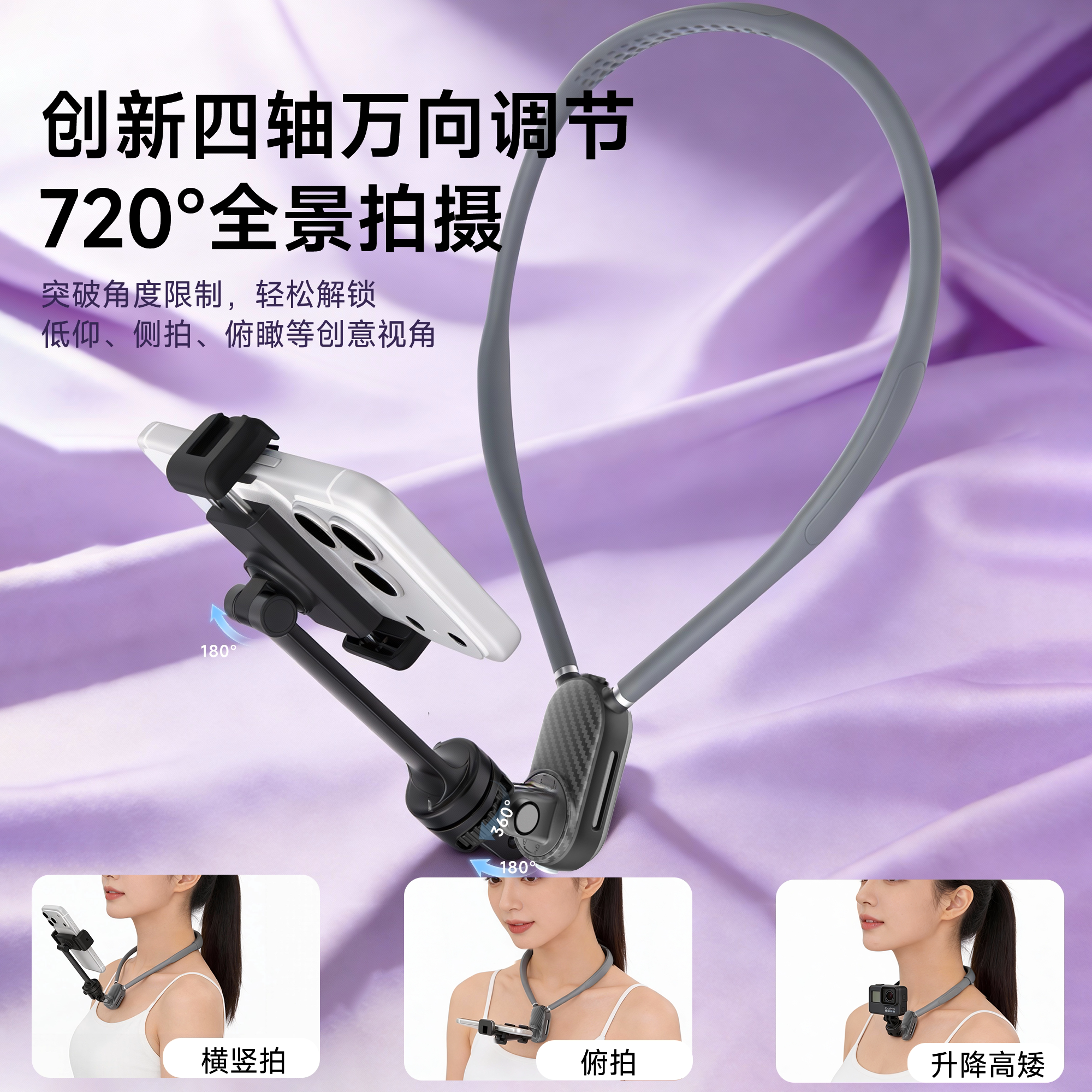 📚 挂脖拍摄神器手机支架第一视角拍摄设备自媒体夹子action6/5pro/4适配大疆pocket3防抖挂脖式手机拍摄支架