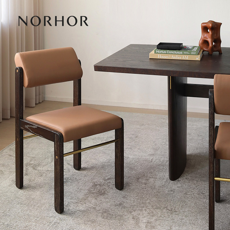 📚 北欧表情NORHOR/中古覆古风MCM/NH56实木可调靠背皮艺餐椅靠背椅