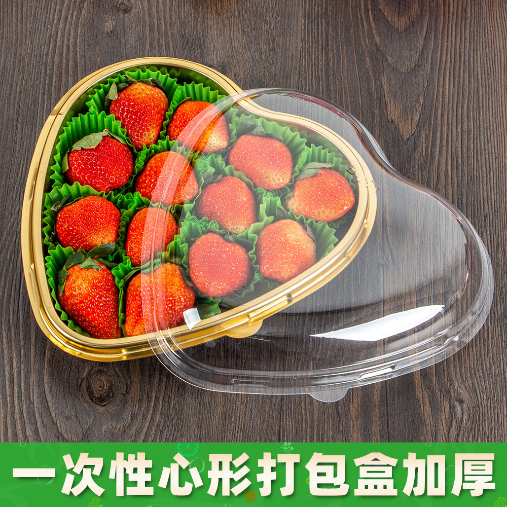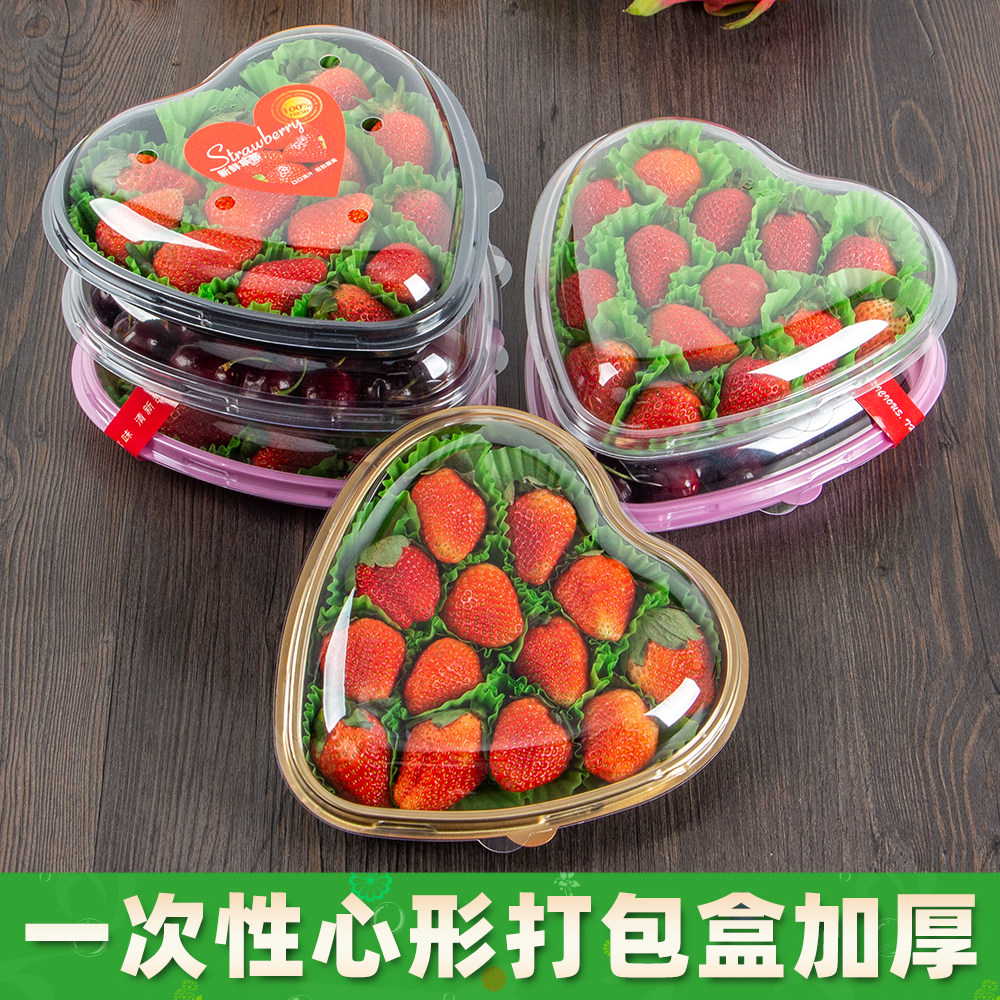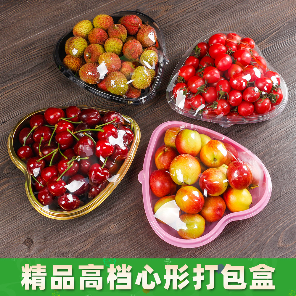📚 一次性心形打包盒车厘子草莓包装盒爱心水果塑料盒网红透明盒子