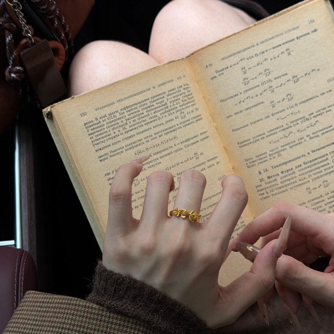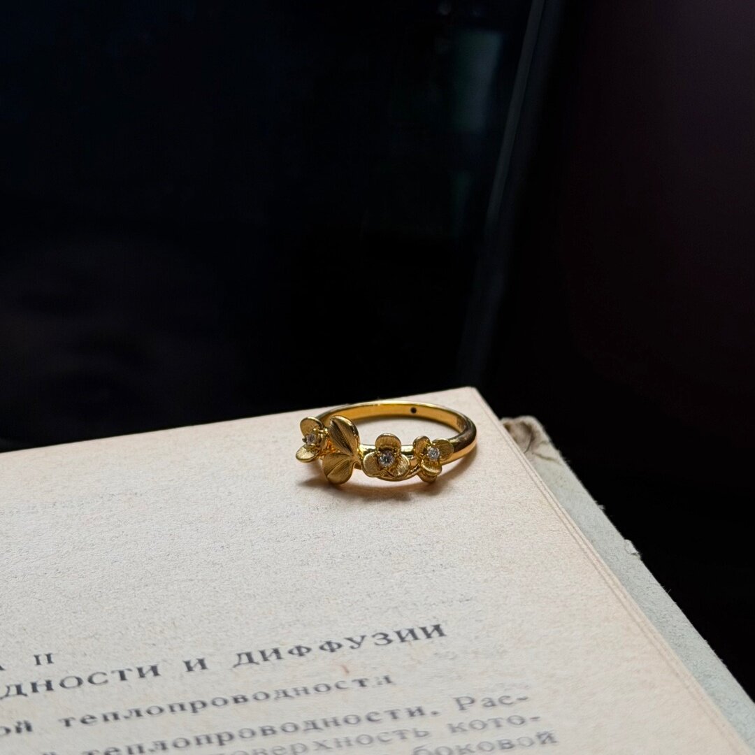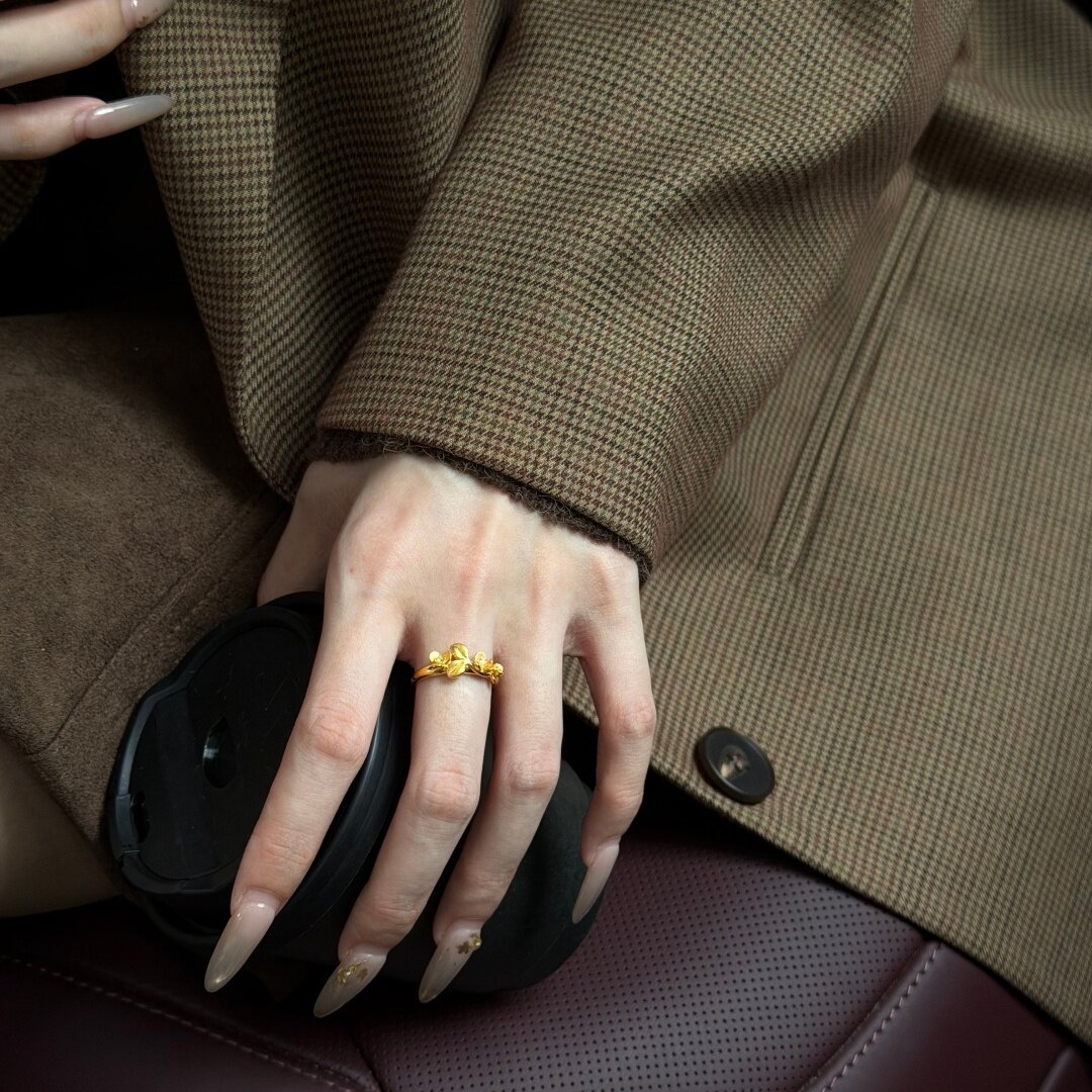 📚 千夕足金999拉丝桂花戒黄金戒指女款求婚情人节生日礼物送女友