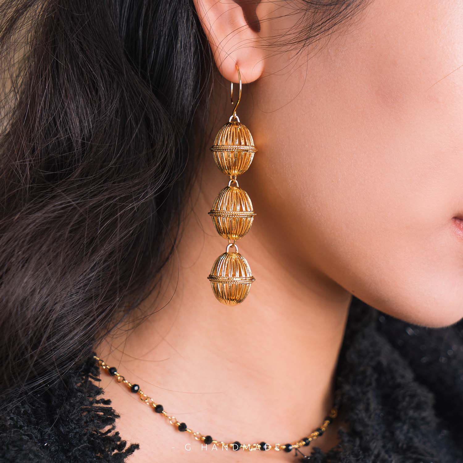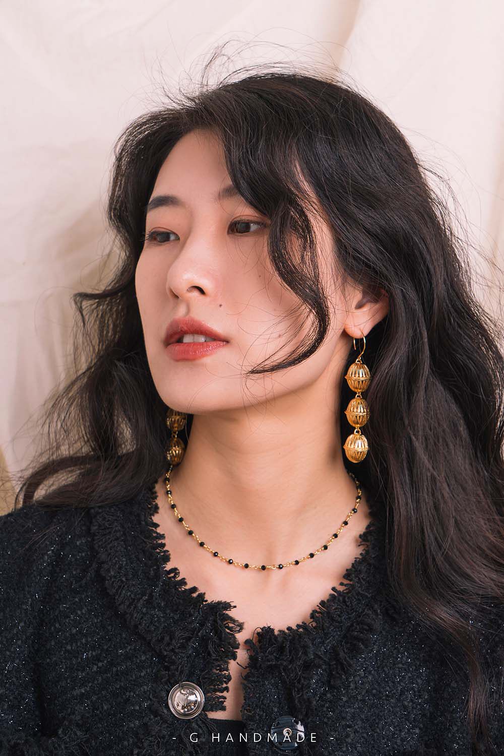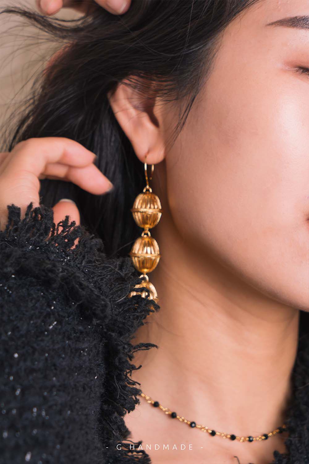 📚 关山月手作 新中式国风耳环灯笼 立体镀金保色耳坠 婚庆旗袍复古