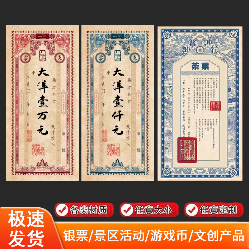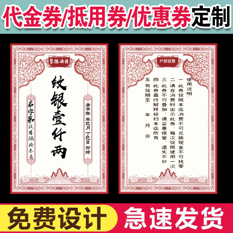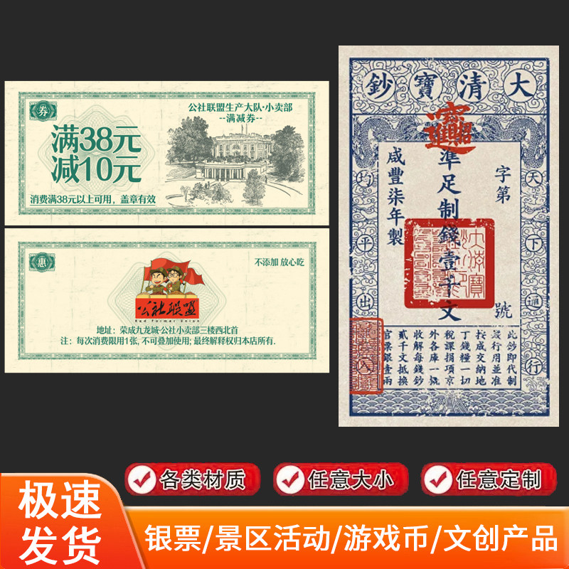 📚 粮票代金定制餐饮复古钱币抵用酒行茶庄消费券景区银票道具优惠券