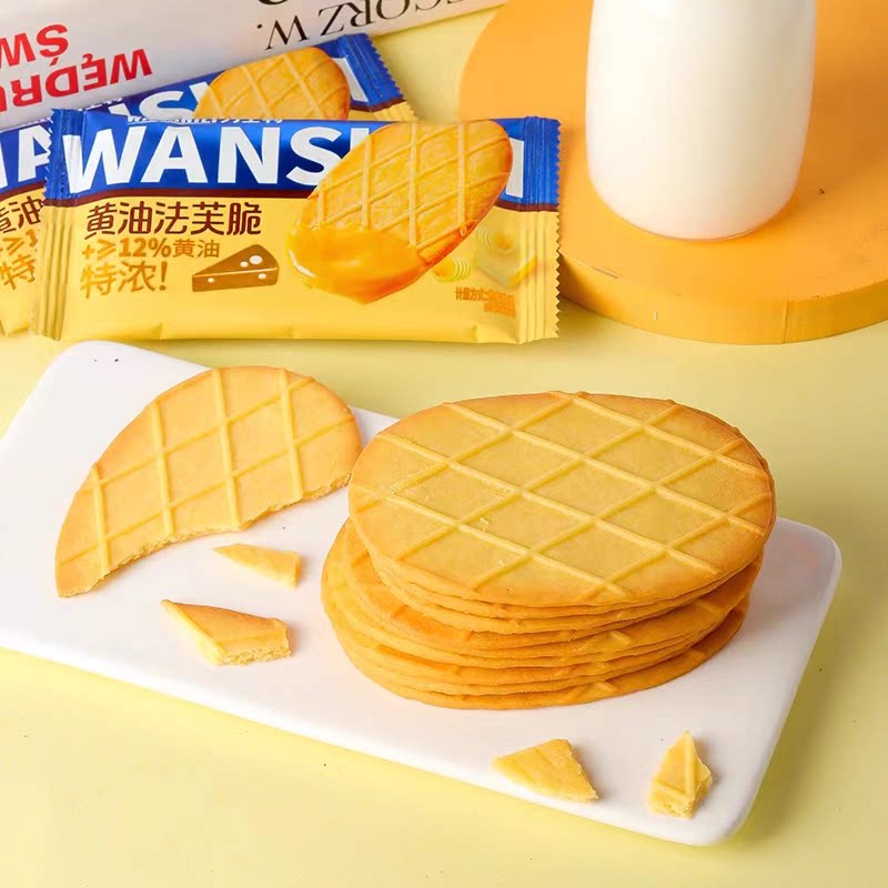 📚 万士利法芙脆黄油巧克力生椰拿铁薄脆华夫饼干儿童解馋零食早餐