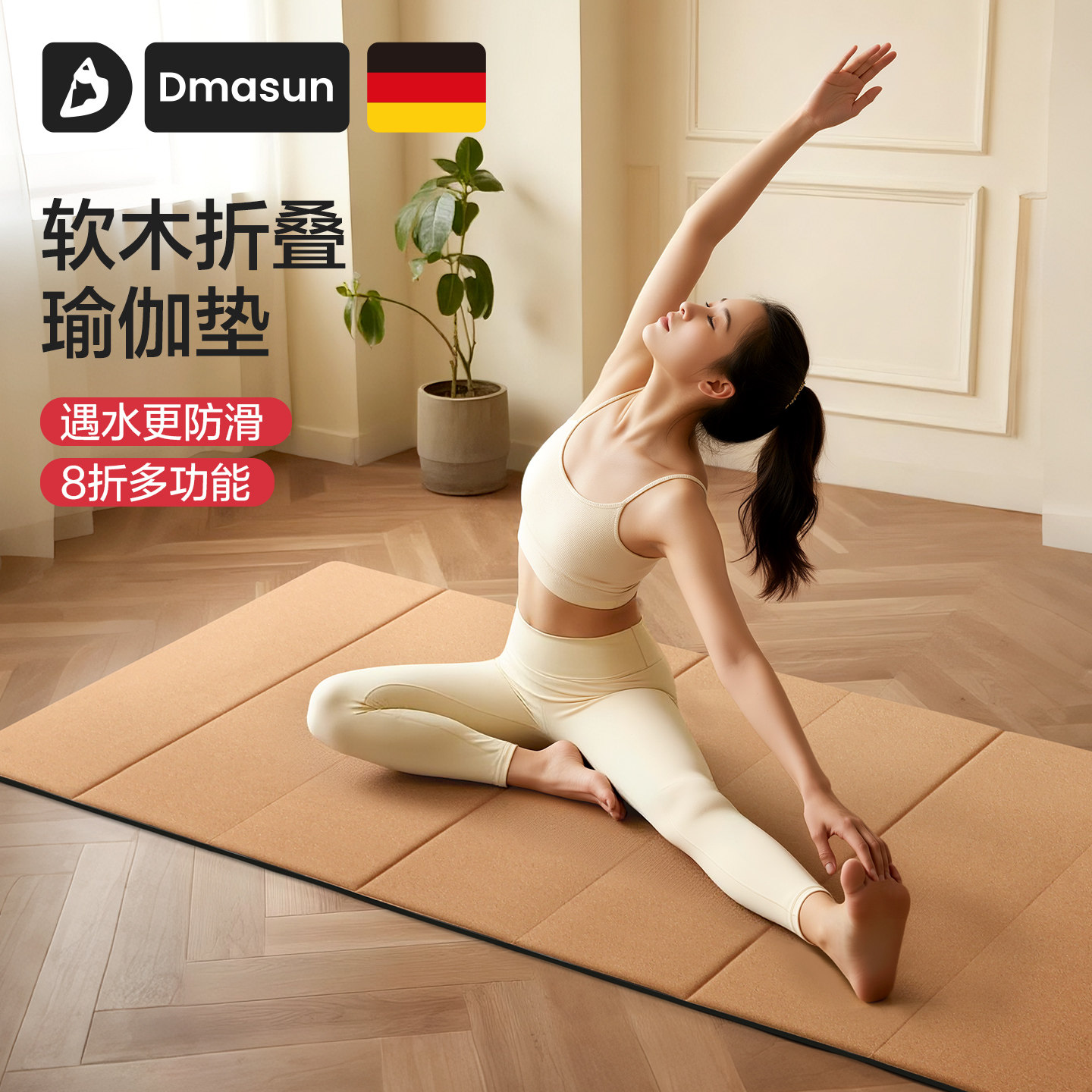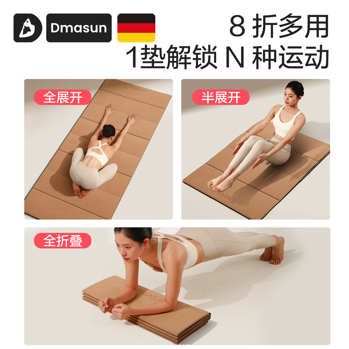 📚 Dmasun软木可折叠瑜伽垫加大健身垫子家用防滑隔音便携可睡觉加厚