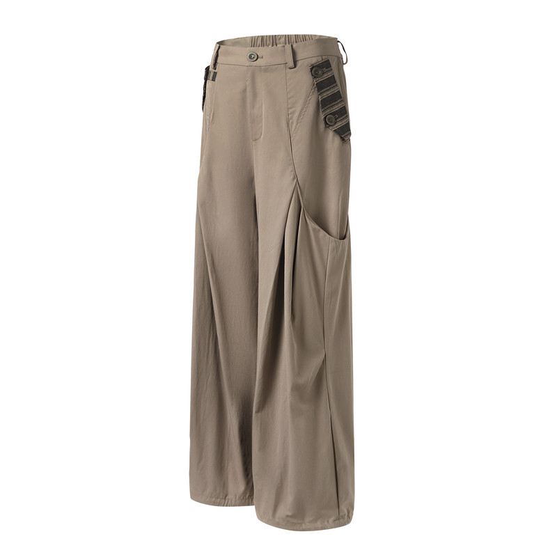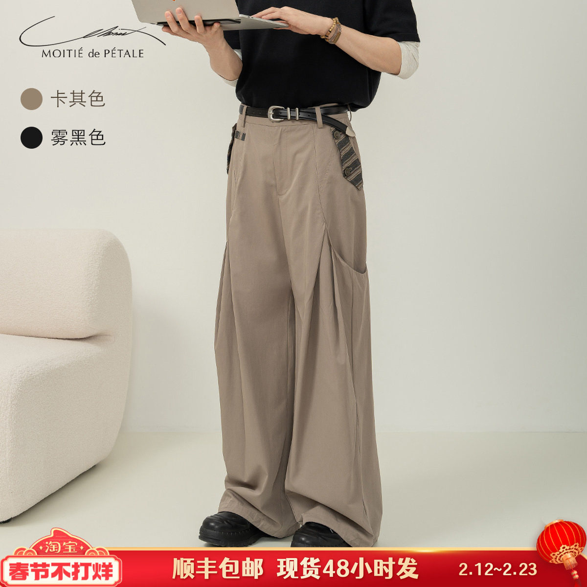 📚 半片花瓣 蝉翼拼接口袋打褶阔腿工装裤 轻薄休闲设计感美式伞兵裤