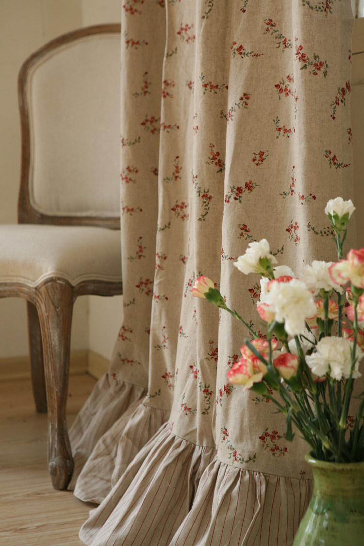 📚 玫瑰晨露 法式/美式乡村/田园 亚麻棉麻印花 卧室/儿童房窗帘定制