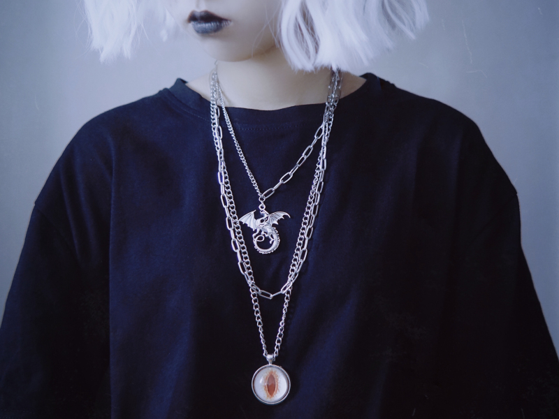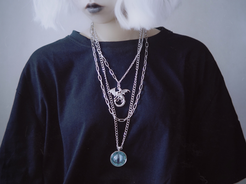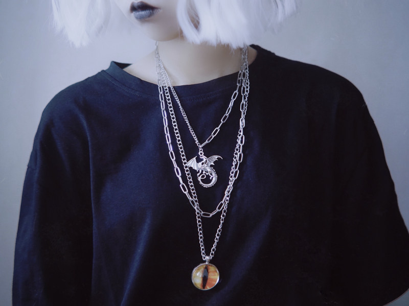 📚 怪糖饰物集原创三层金属项链暗龙眼球恶龙男女同款
