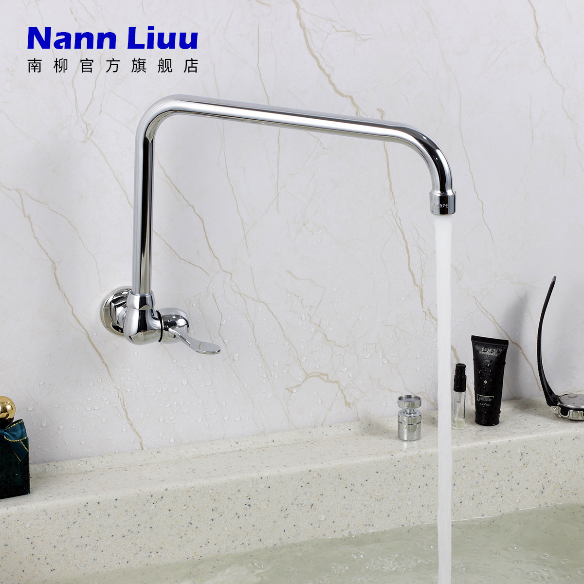 📚 户外洗衣池入墙式水龙头加长加高七字菜盆单孔餐厅灶台摇摆水龙头