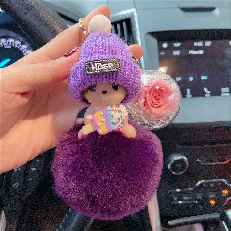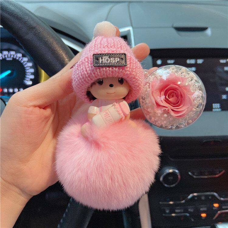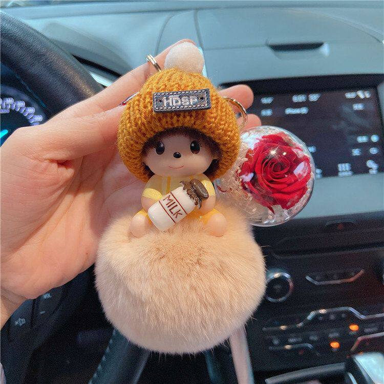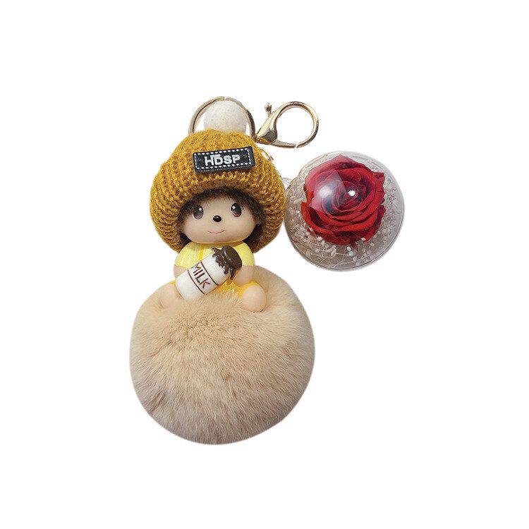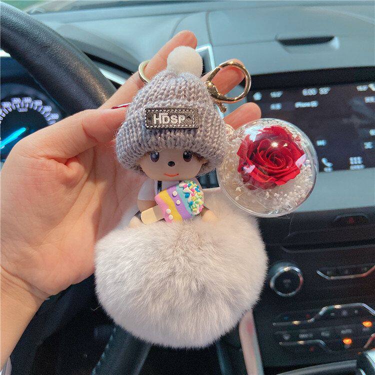 📚 蒙太奇SP时尚钥匙扣可爱卡通毛绒玩偶背包挂件玫瑰永生花少女饰品