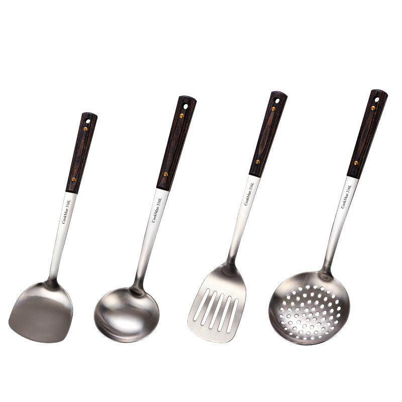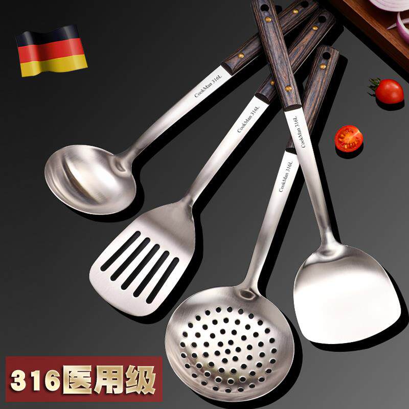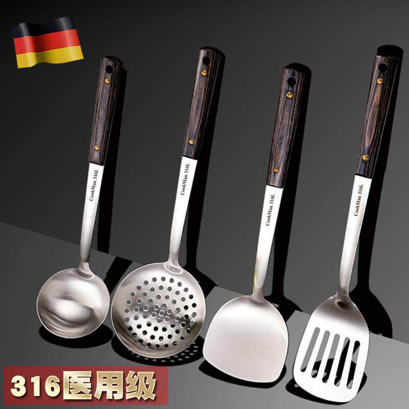 📚 316不锈钢锅铲炒菜铁铲子防烫木柄家用厨房汤勺漏勺勺子厨具套装