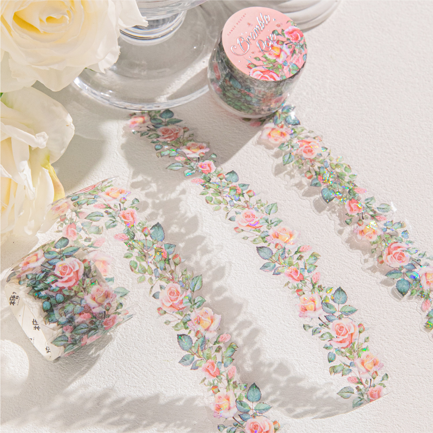 📚 花开梦境冰晶PET胶带繁花卉藤蔓玫瑰植物循环装饰素材diy造景拼贴