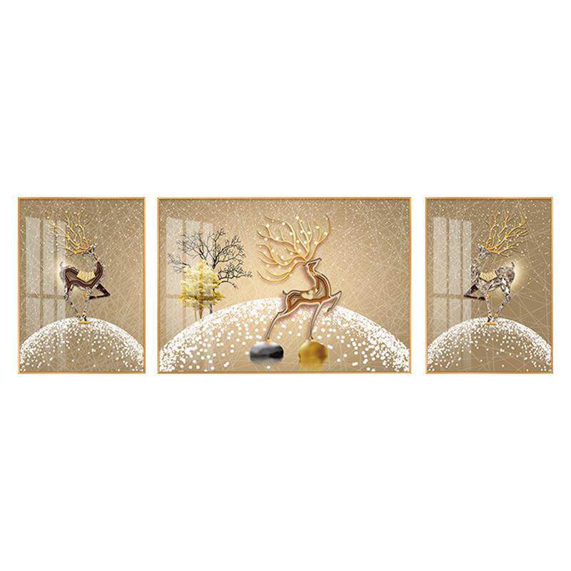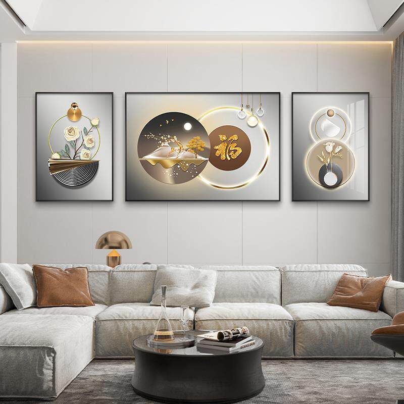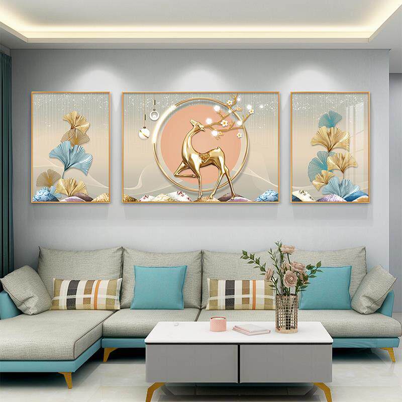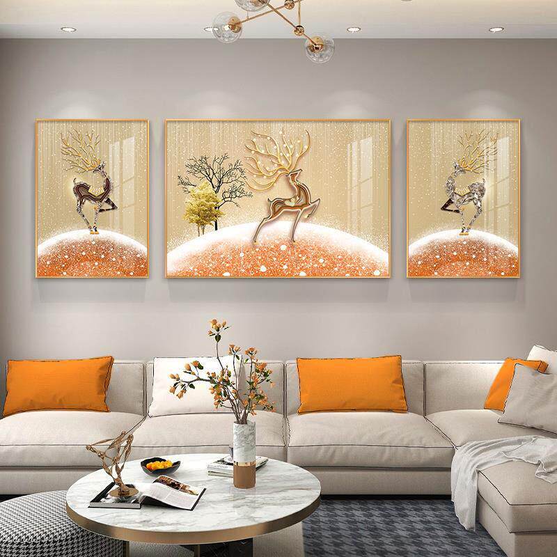 📚 晶瓷画轻奢客厅装饰画沙发背景墙三联画现代简约餐厅壁画麋鹿挂画