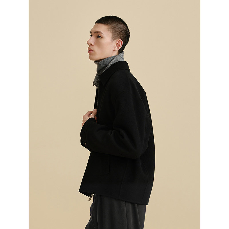 📚 GXG男装 黑色含山羊绒通勤短款大衣 24冬品G24X064009