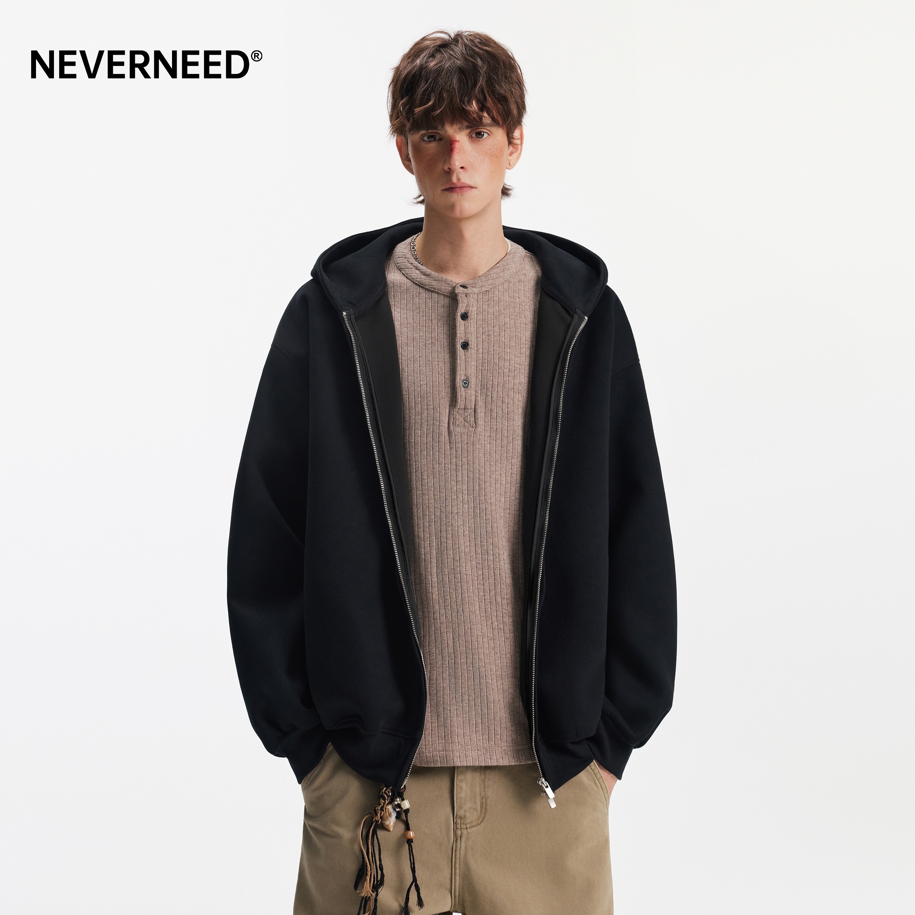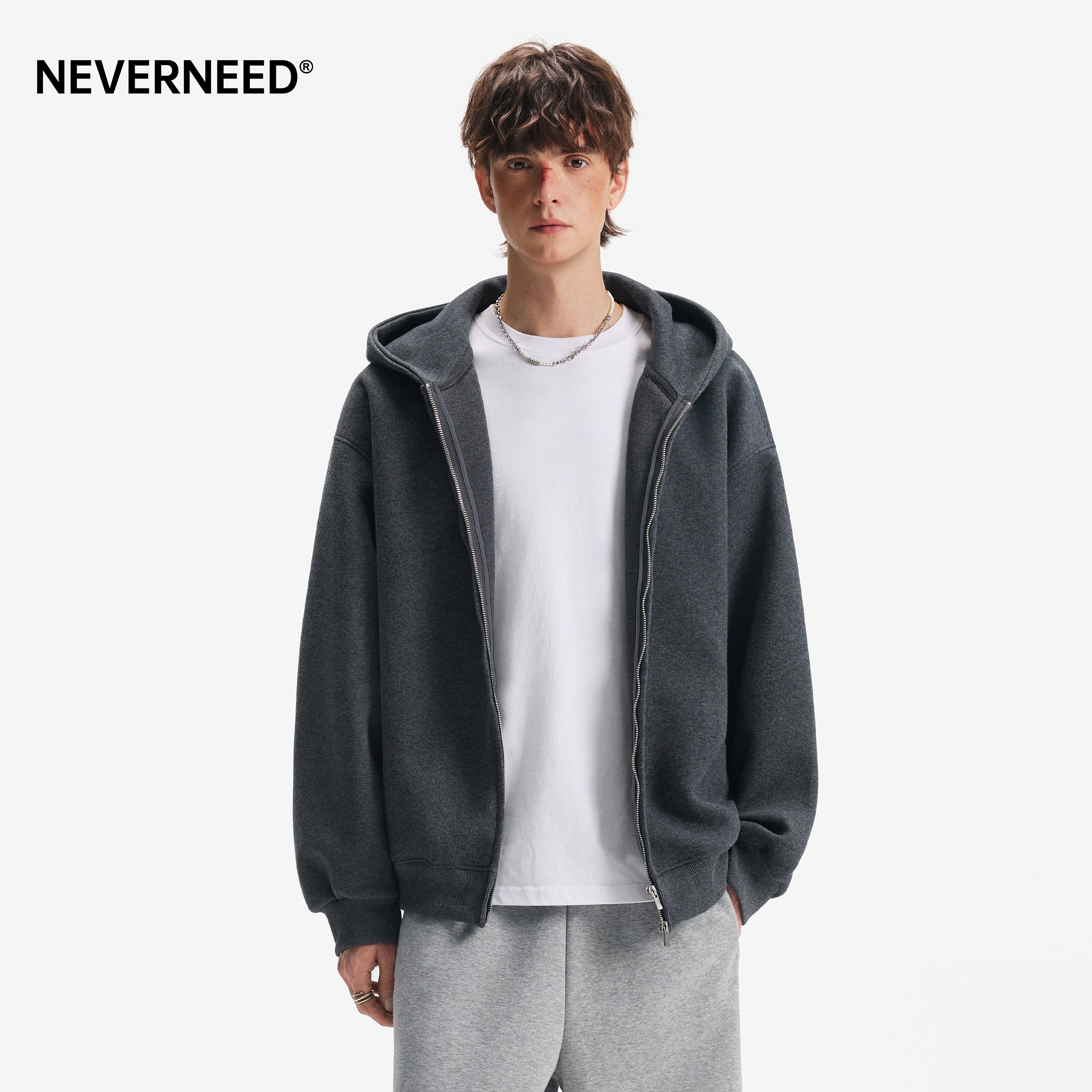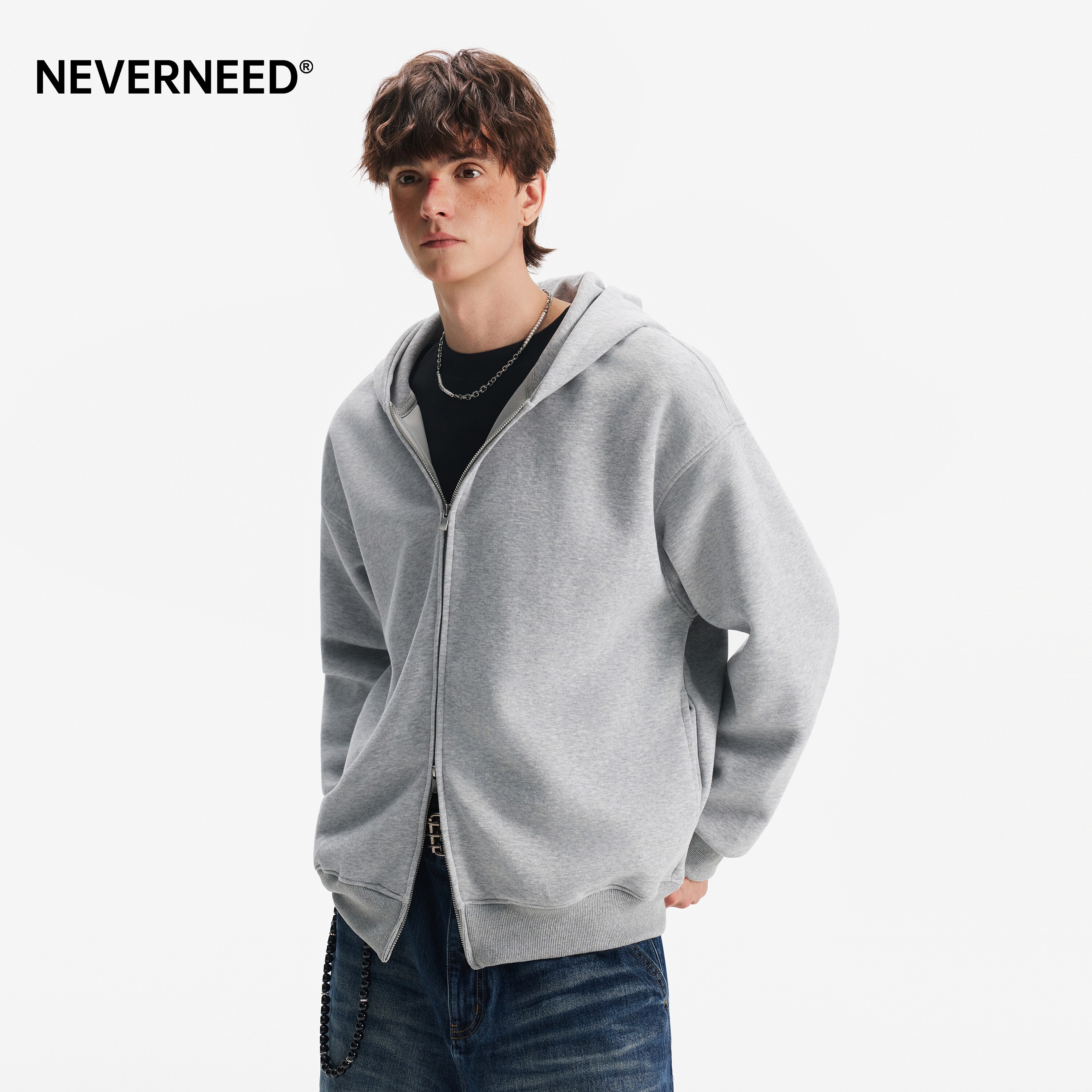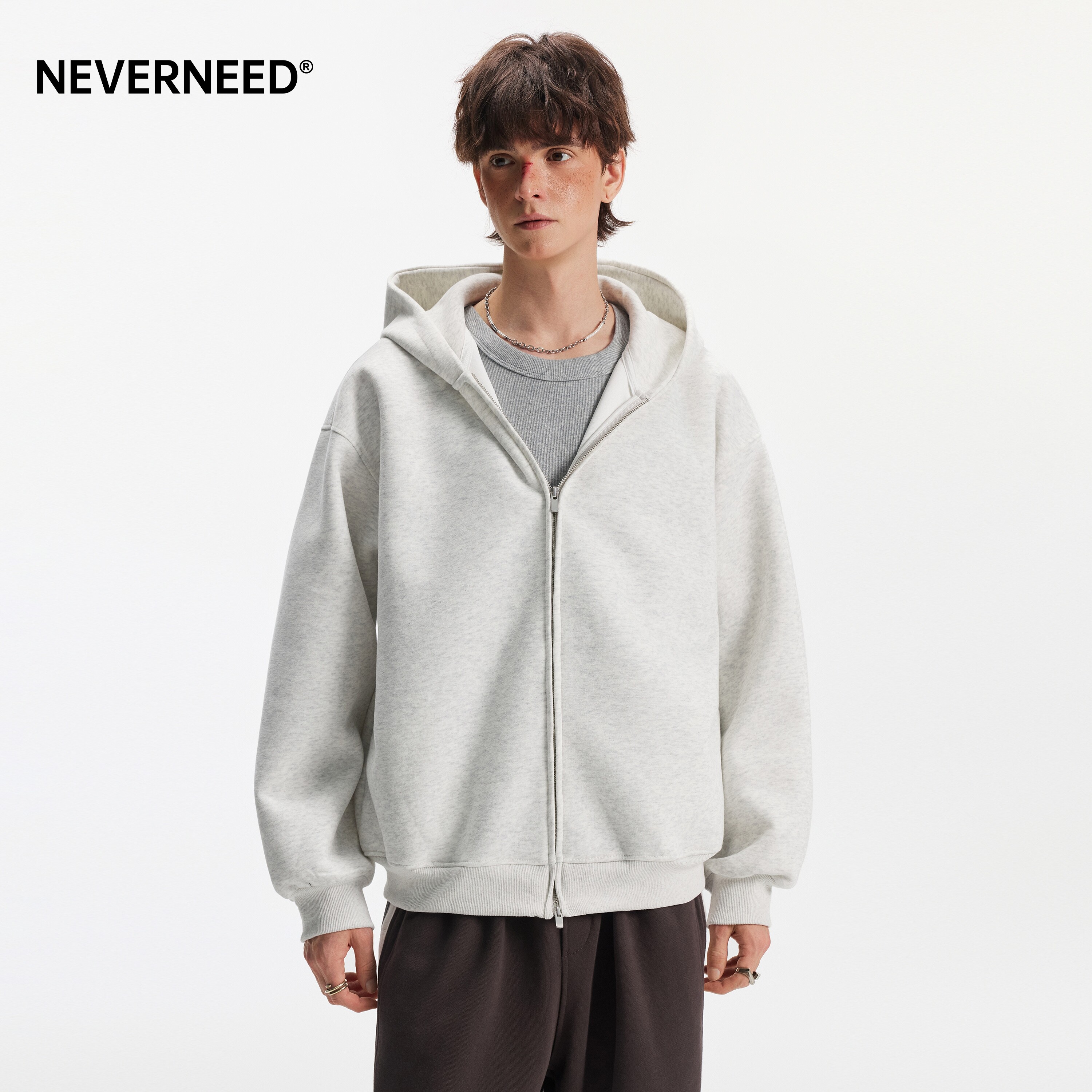 📚 NEVERNEED重磅连帽卫衣男女春季美式cleanfit双拉链短款纯色外套