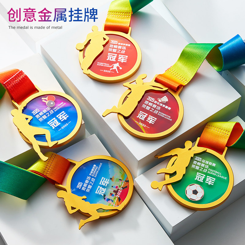 📚 金属水晶奖牌挂牌定制马拉松篮球足球运动会比赛冠军儿童荣誉勋章