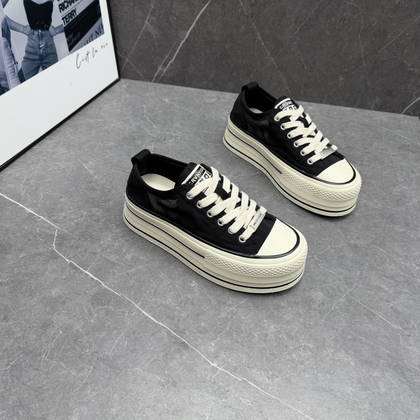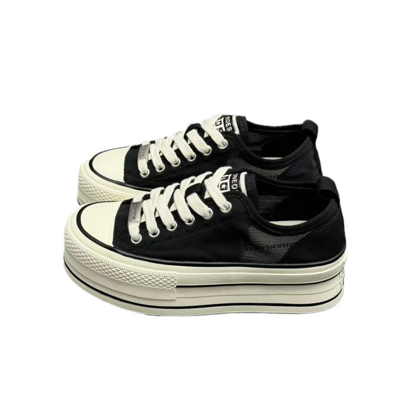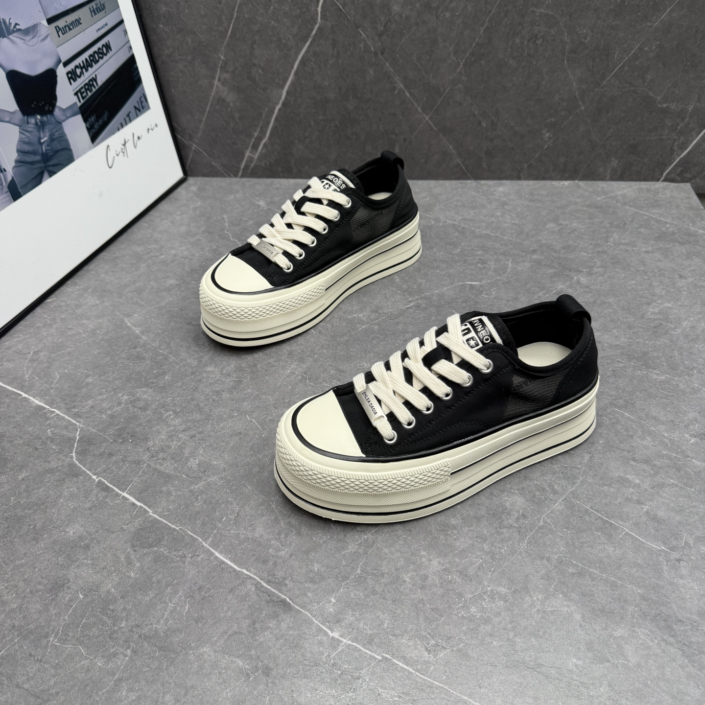 📚 厚底网纱透气休闲鞋女2026夏季新款透气百搭增高圆头系带休闲板鞋