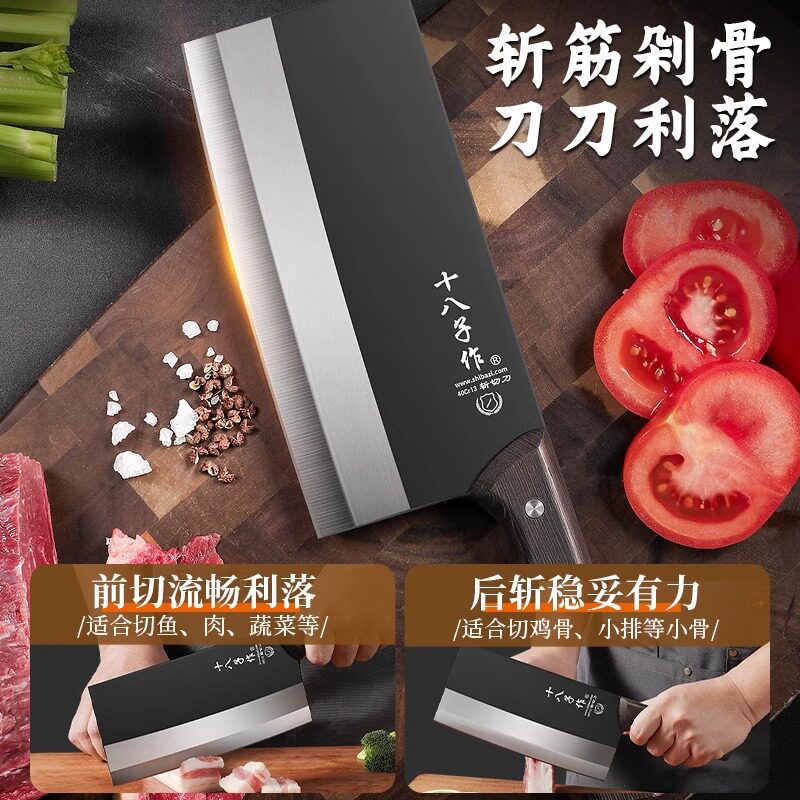 📚 十八子作菜刀正品锋利斩切两用刀厨师专用切片刀家用砍骨刀具套装