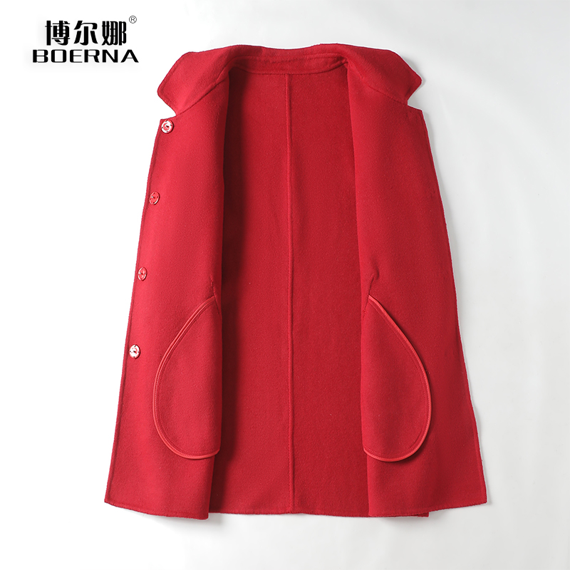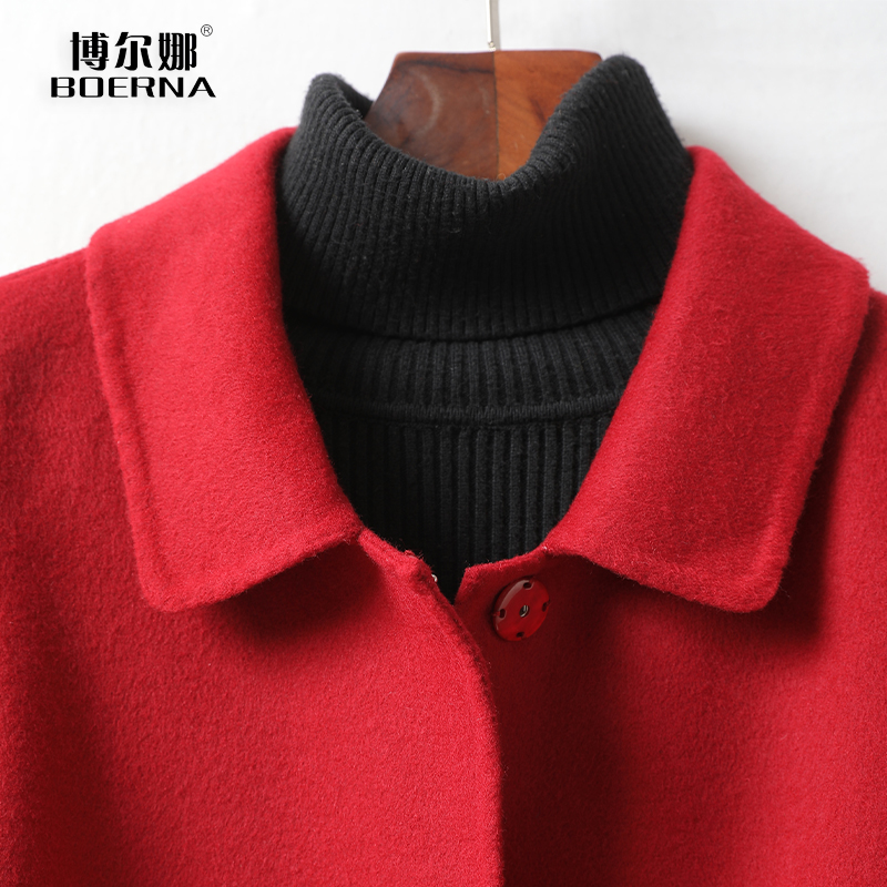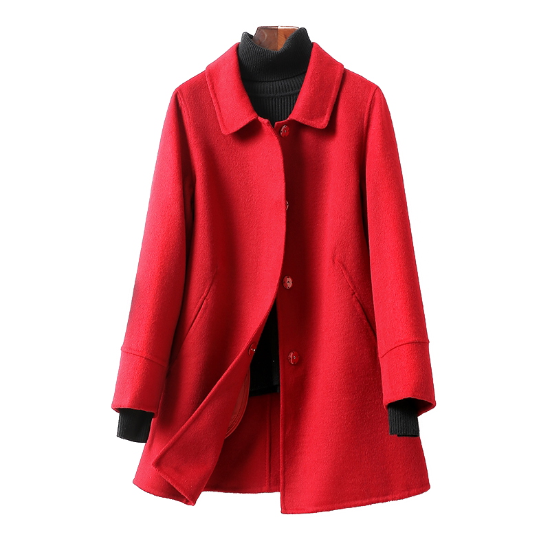 📚 毛呢外套女常规款酒红色修身气质春秋新款高端双面羊毛大衣小个子